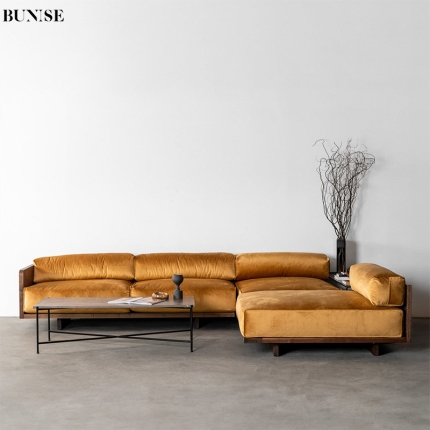 Nordic Modern Multi Seater Fabric Sofa Solid Walnut Wood Frame Designer Style for Living Room and Homestay Suitable for Small Apartment