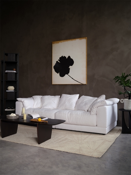 Bunise Black Genuine Leather Sofa Vintage Bauhaus Style, Cloud Shape, Minimalist Design, Suitable for Living Rooms and Small Condos, 3-Seater Model