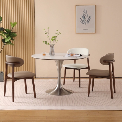 Vintage Round Table Pine Scandinavian Solid Wood Home Small Household Dining Table and Chair Combination Used Walnut Color Coffee Table Reception Table