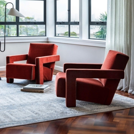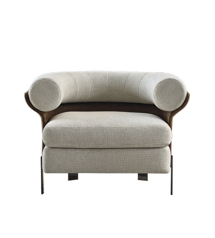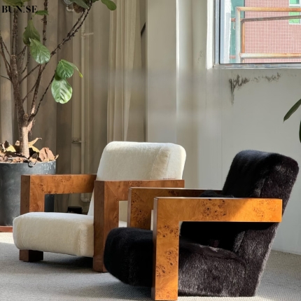 Single Sofa Chair Vintage Wabi Sabi Style Solid Wood Frame with Mohair Upholstery Designer Piece for Living Room and Balcony