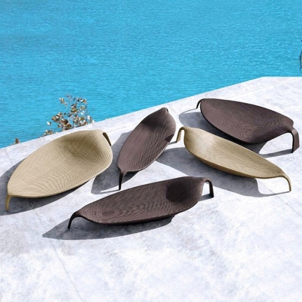 Bunise Outdoor Bed in the Shape of a Leaf, Woven Rattan, Resort Style, Suitable for Hotels, Villas, Balconies, Swimming Pools and Gardens