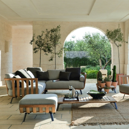 BUNISE Teak Outdoor Sofa Set P40 - Solid Wood Patio Furniture with Coffee Table for Villas, Hotels, and Gardens