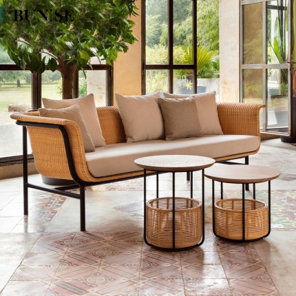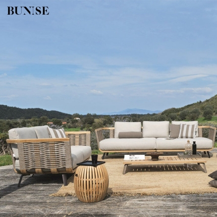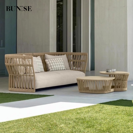 BUNISE Nordic Outdoor Sofa Set P36 - Rope and Woven Rattan Furniture for Gardens, Balconies, and Villas