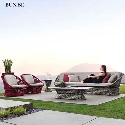 Outdoor Rattan Furniture Sofa Set for Garden and Holiday Villa Italian Style Luxury Waterproof Sun Resistant
