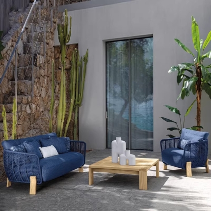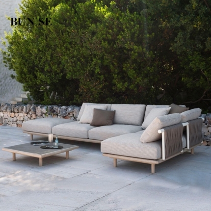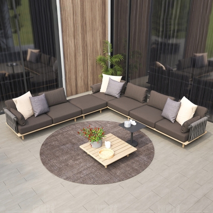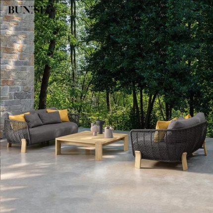 Outdoor Rattan and Teak Sofa Set Designer Style for Garden Balcony and Luxury Villa Waterproof Sun Resistant Ideal for Hotel and Homestay