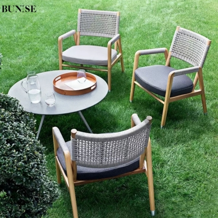 Outdoor Solid Wood and Rattan Sofa Set with Table and Chairs for Garden Balcony and Patio Designer Style Ideal for Homestay and Hotel