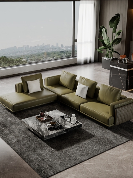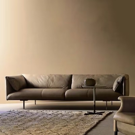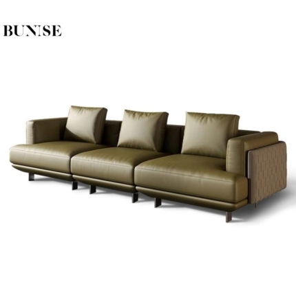 Bunise Genuine Leather Woven Sofa Italian Minimalist Design Elegant Modern Style Straight Layout and Wide Hall Suitable for Living Rooms