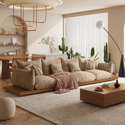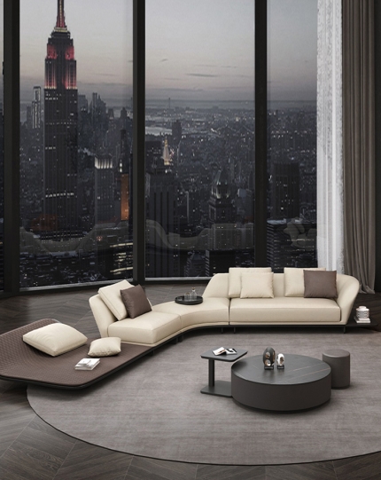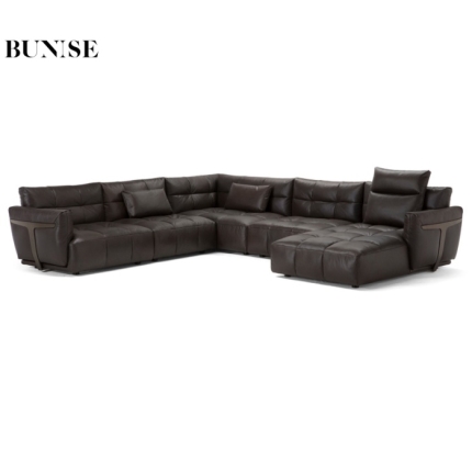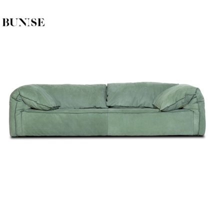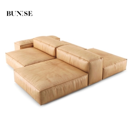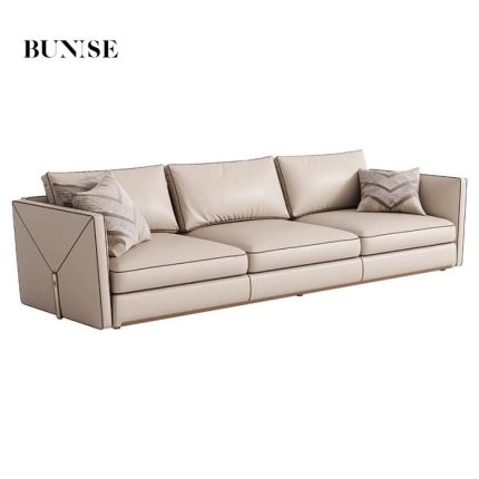 BUNISE leather sofa with removable backrest, minimalist Italian style, extra wide seating depth, villa living room, horizontal hall, large flat floor, modular leather sofa