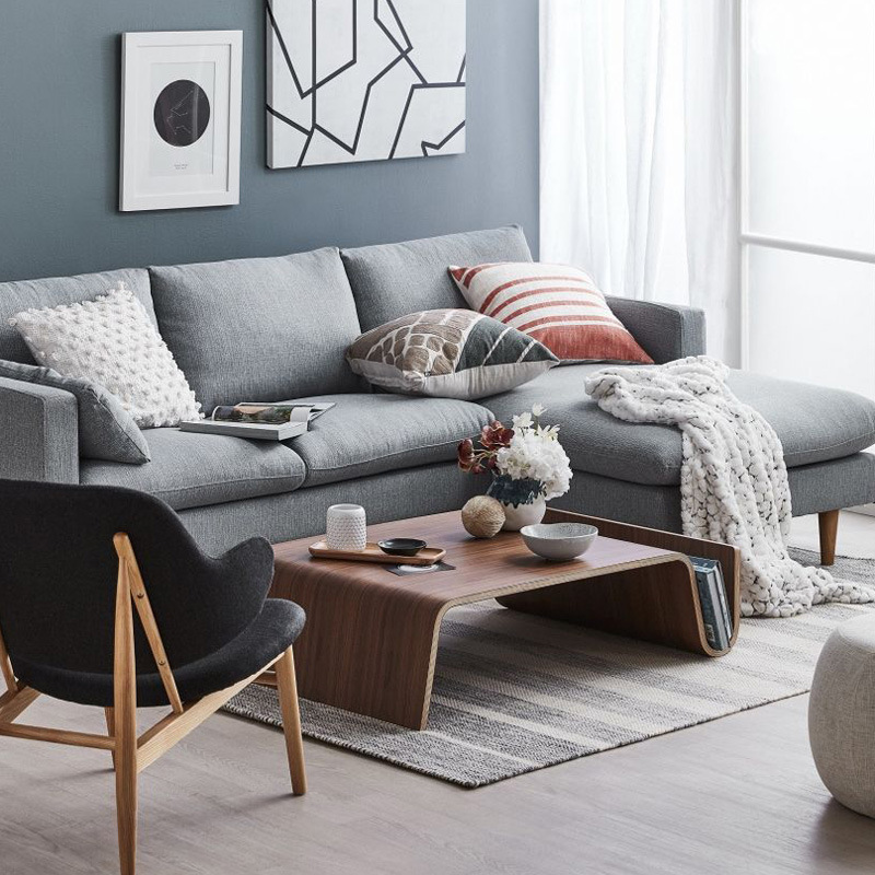 Nordic Modern Multi Seater Fabric Sofa Solid Walnut Wood Frame Designer Style for Living Room and Homestay Suitable for Small Apartment
