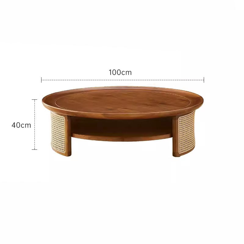 Modern Minimalist Ash Wood & Rattan Low Table for Living Rooms