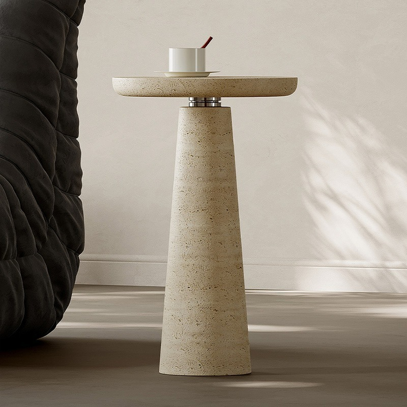 Wabi Sabi Style Round Sofa Side Table Creative Travertine Design For Living Room And Small Apartments Free Nationwide Delivery