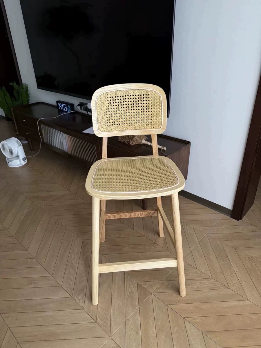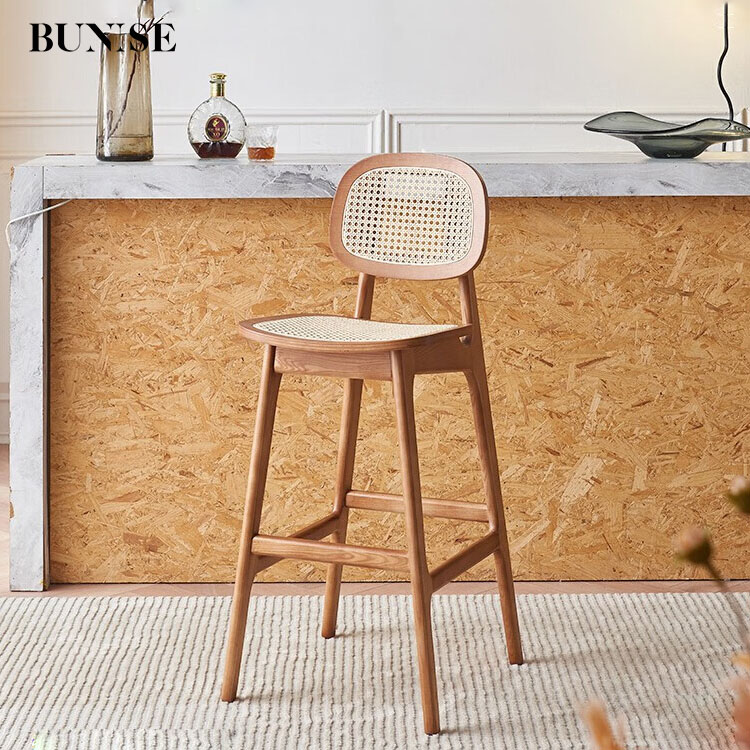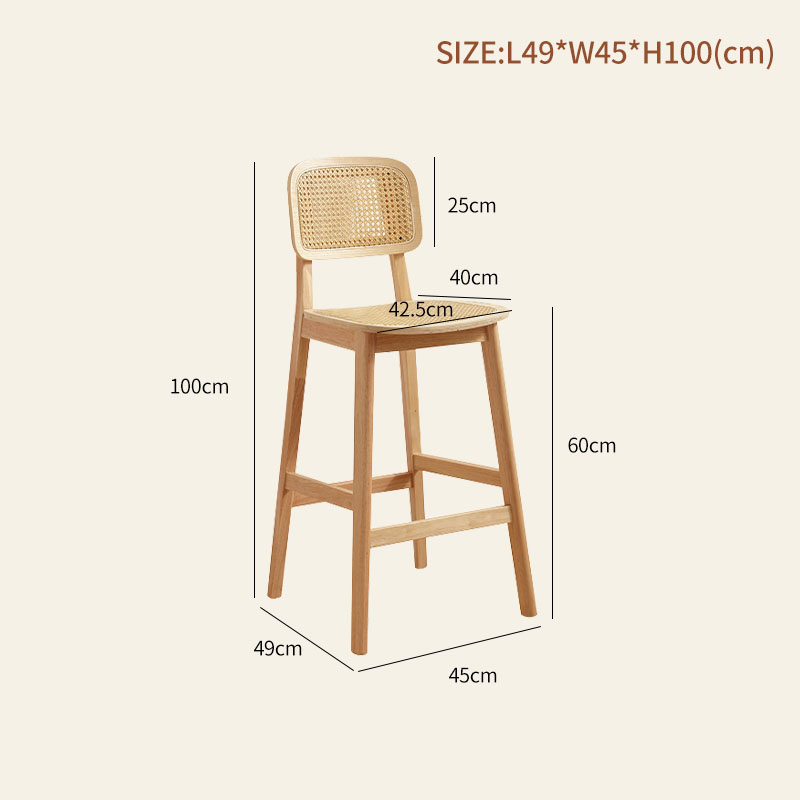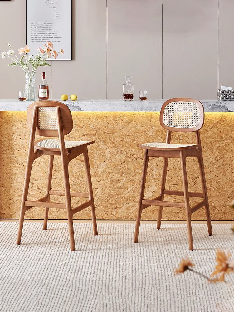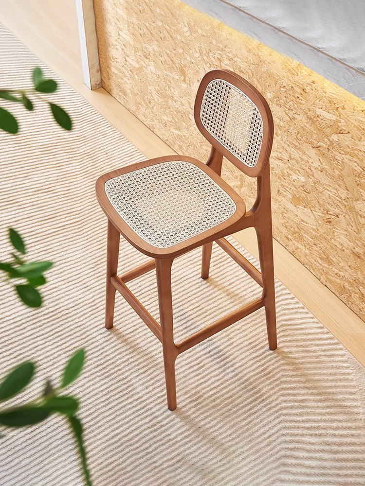 Wabi-Sabi Rattan High Chair with Backrest for Kitchen Islands and Bars