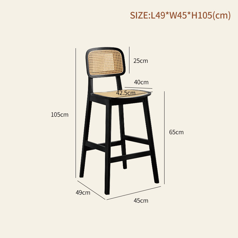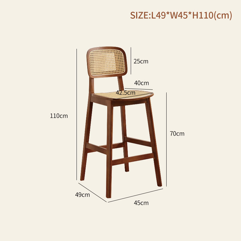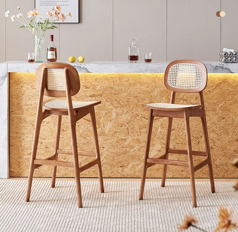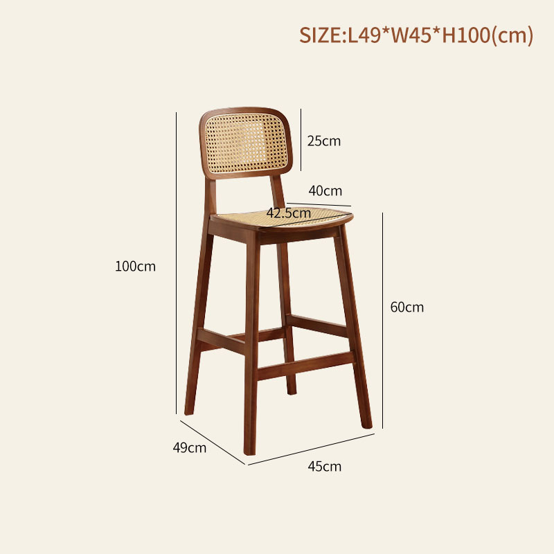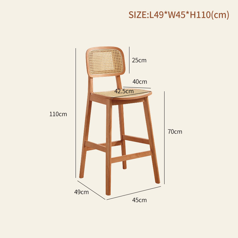 Wabi-Sabi Rattan High Chair with Backrest for Kitchen Islands and Bars