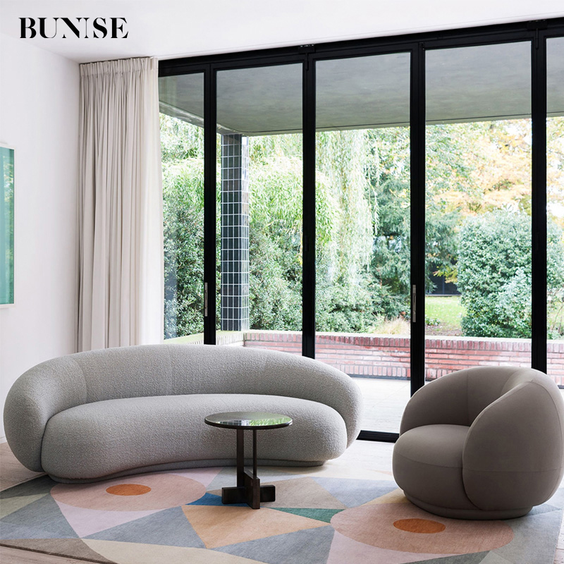 Designer Italian Style Curved Sofa for Living Room, Half-Round Shape, Cream Fabric