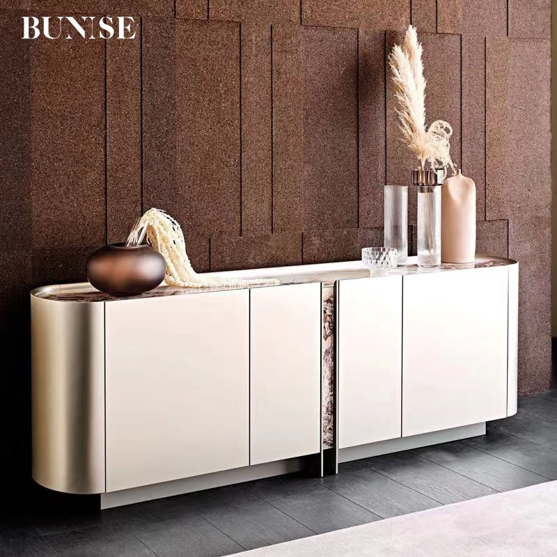 Italian luxury marble sideboard Tall cabinet against the wall Kitchen cupboard Floor standing Designer High-end storage