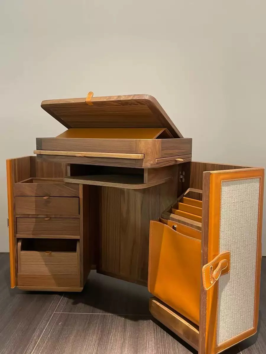 BUNISE ITALY Hermes Folding Filing Cabinet LeatherJewelry Cabinet BG1218