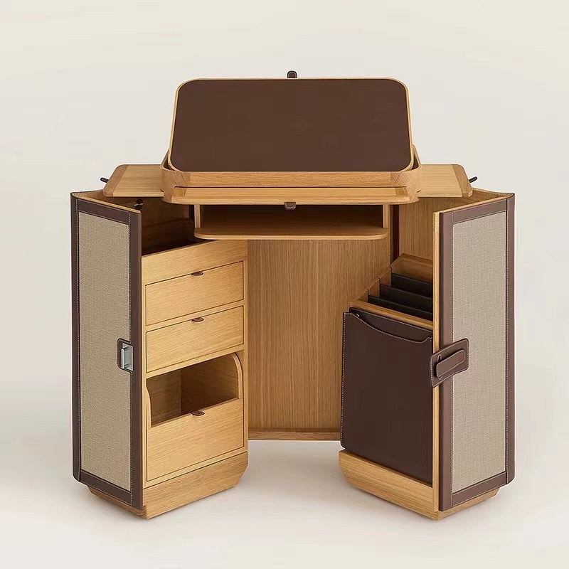 Minimalist Cosmetic Cabinet Hermes Desk Multifunctional Folding Filing Cabinet Premium Feeling Leather High-end Jewelry Cabinet