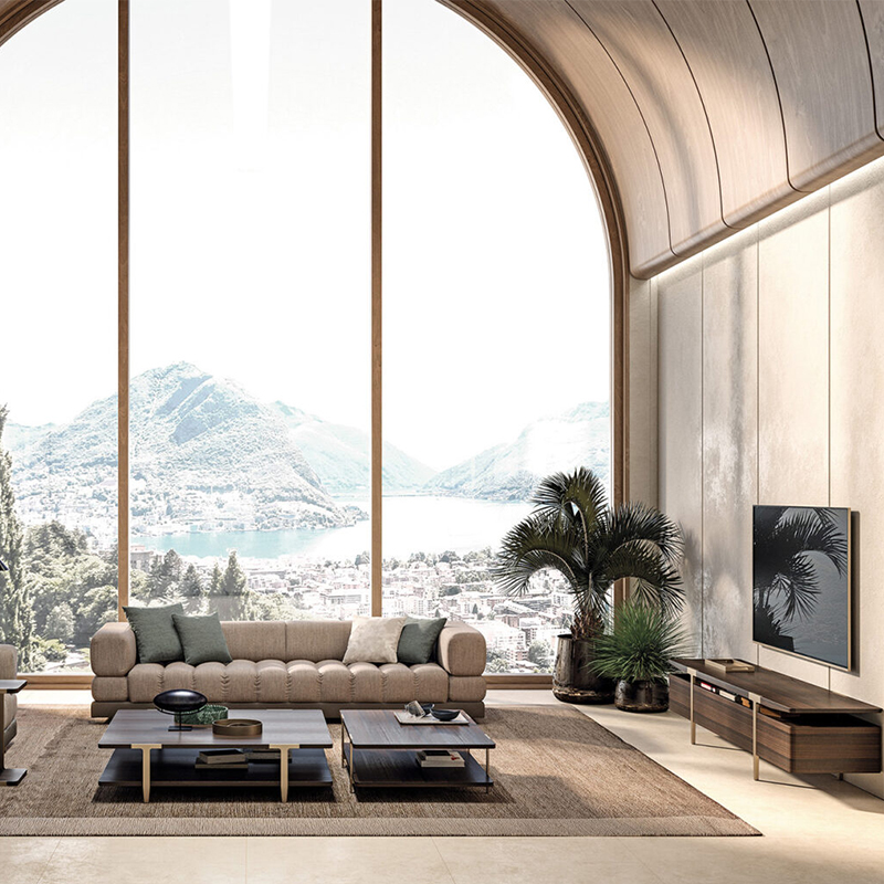 Italian Minimalist Curved Fabric Sofa Cotton Linen With Sintered Stone Elements Wabi Sabi Style Designer Original New Model For All Living Room Sizes Free Nationwide Delivery