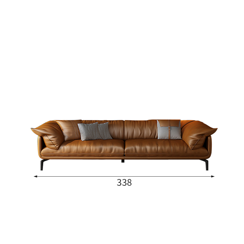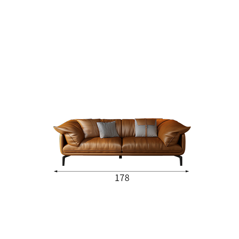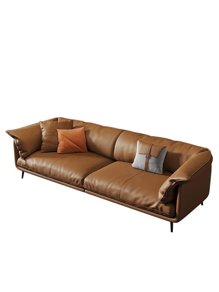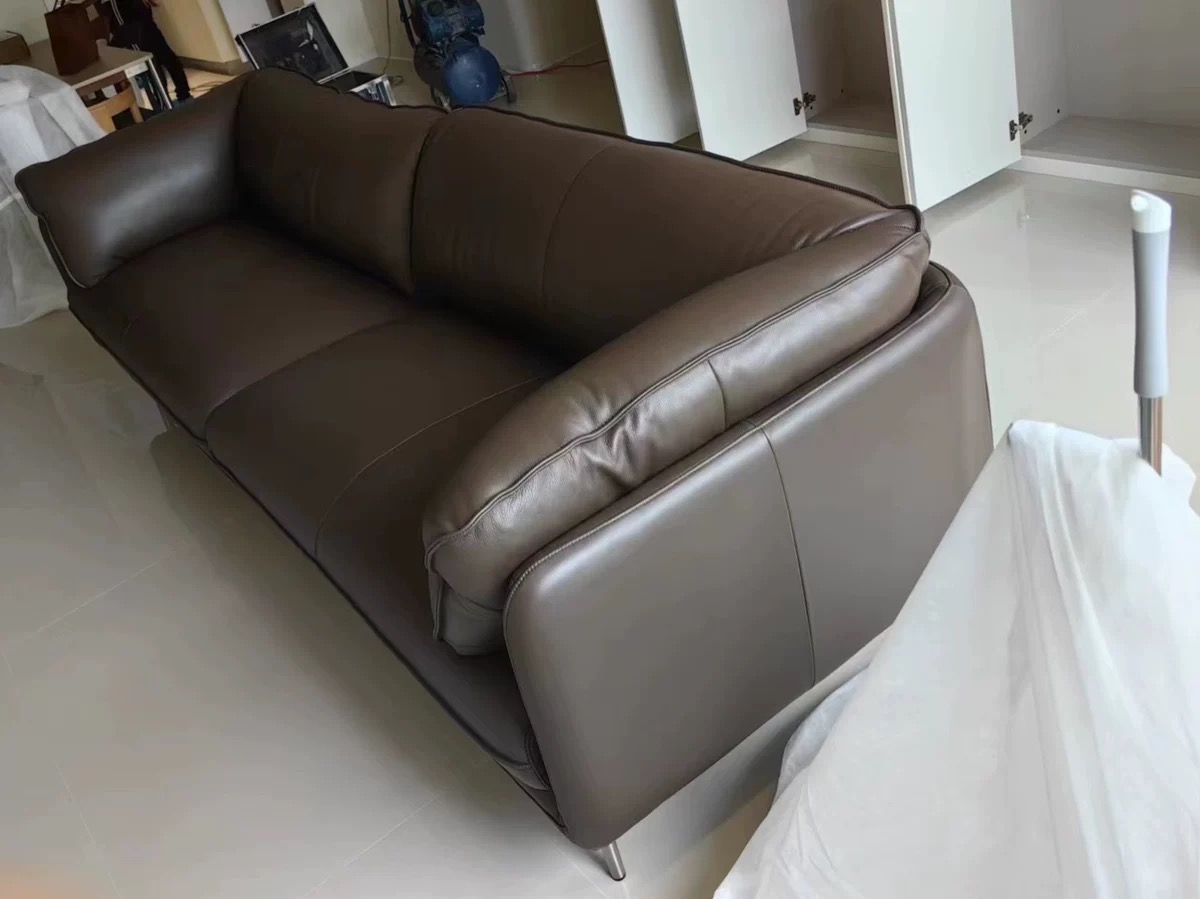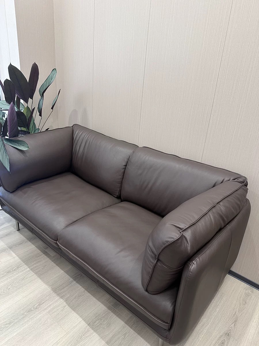 Bunise Nappa Leather Sofa with Feather Filling. Modern Minimalist Style, Genuine Top-Quality Leather, Suitable for Small Condos and Living Rooms