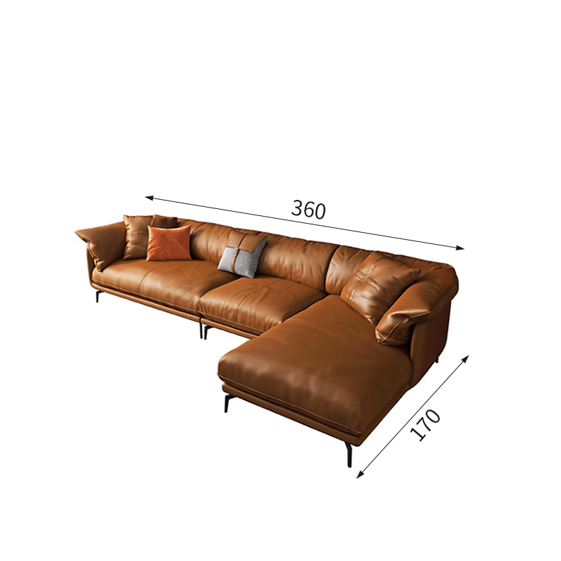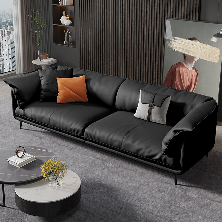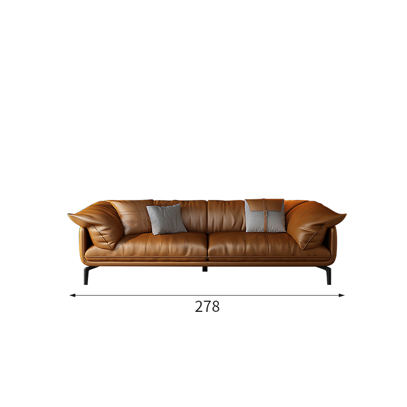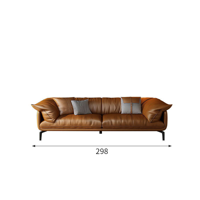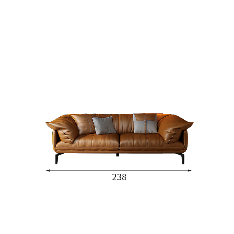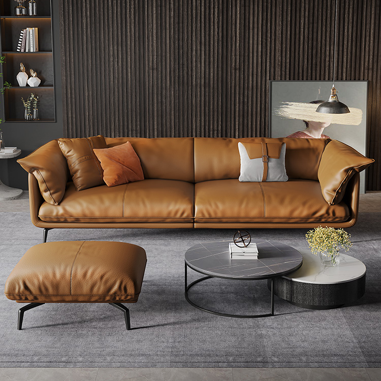Bunise Nappa Leather Sofa with Feather Filling. Modern Minimalist Style, Genuine Top-Quality Leather, Suitable for Small Condos and Living Rooms