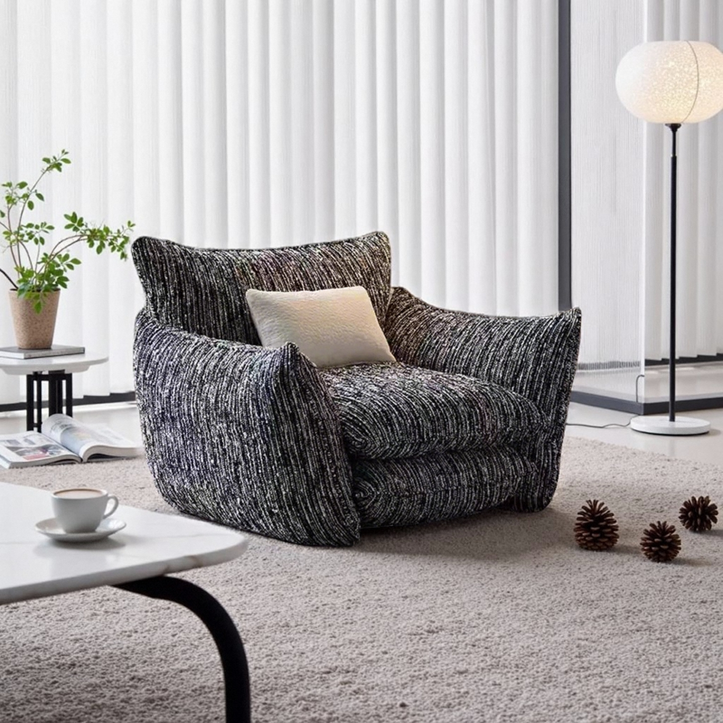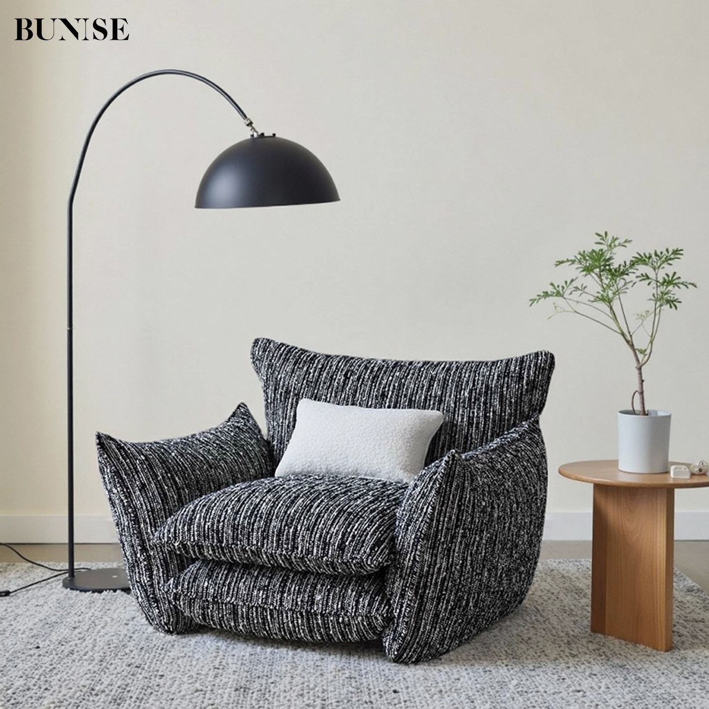 Three Seater Fabric Sofa Black and White Cream Style Ultra Soft Alpaca Fleece Modular Removable Cover for Luxury Living Room