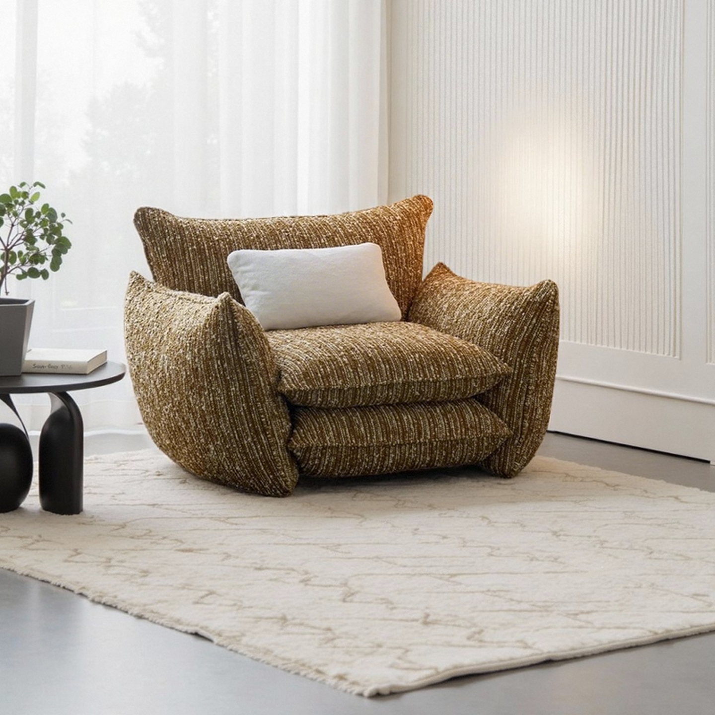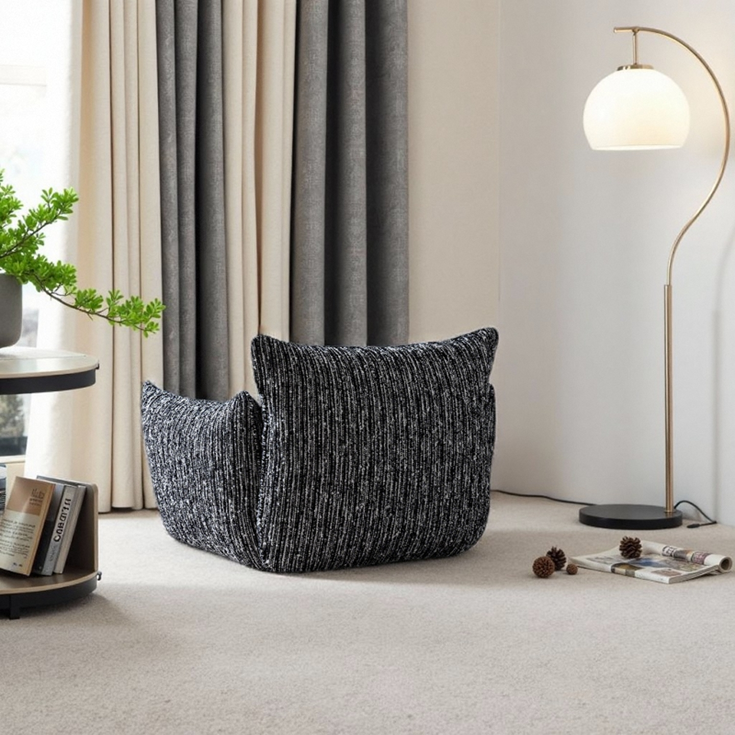 Fabric Lounge Chair Vintage Lazy Style Designer Pick for Small Spaces Balcony or Relaxing Corners