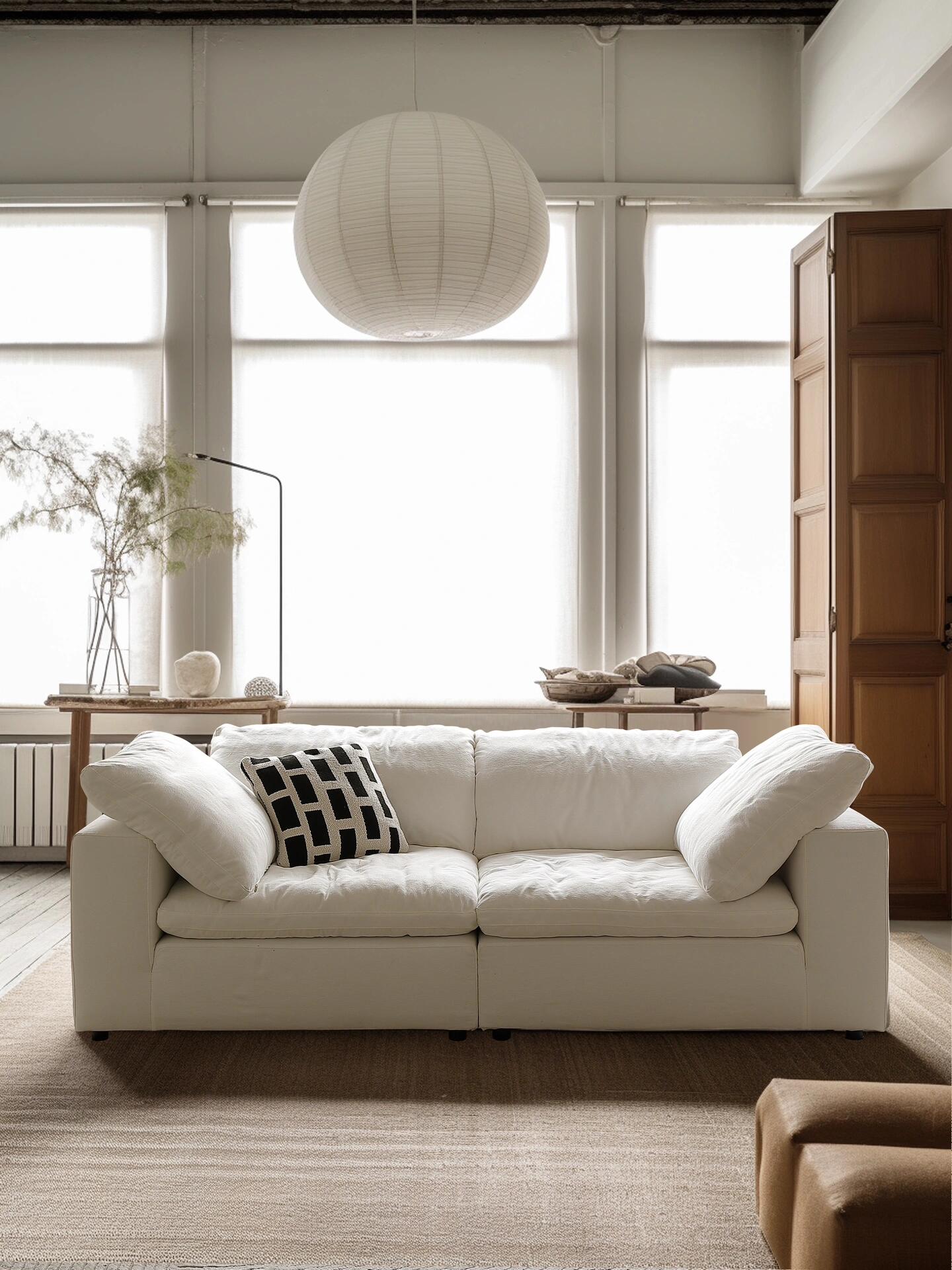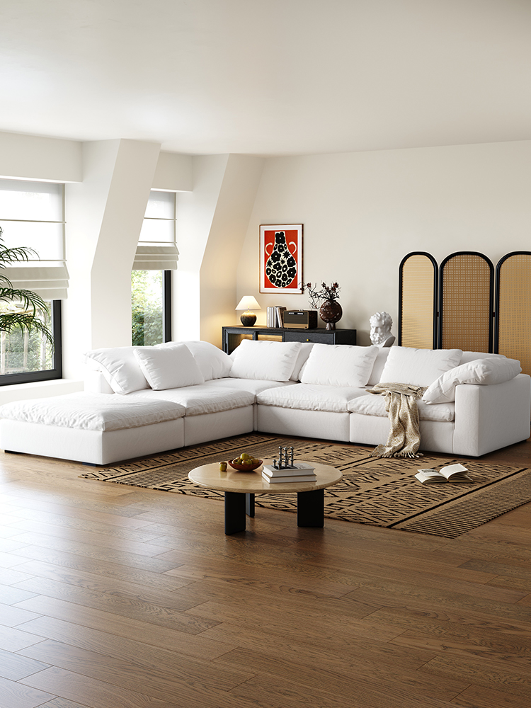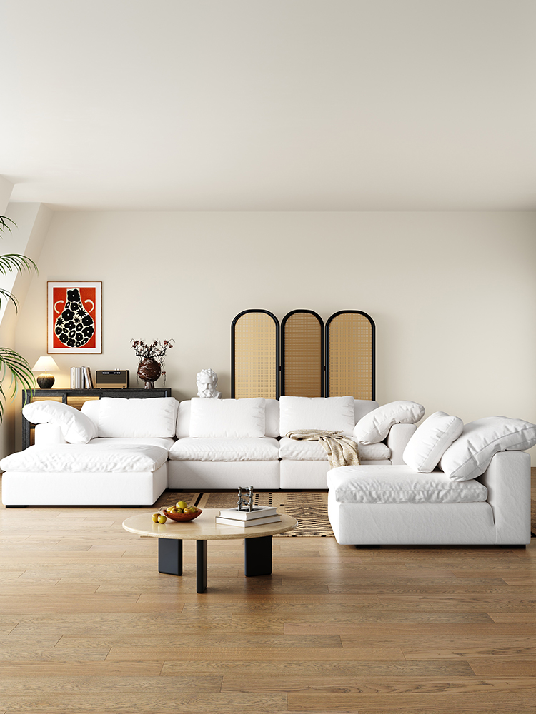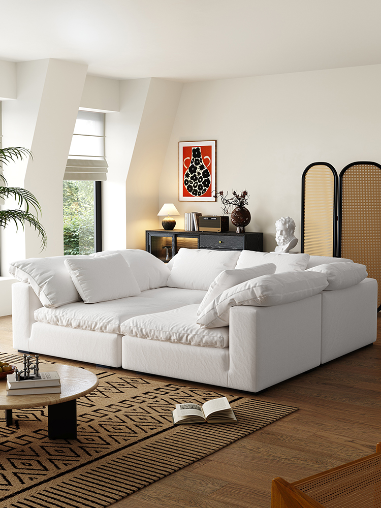 Cloud Cream Wabi-Sabi Linen Feather Modular Sofa Set Minimalist Cozy Style for Living Room