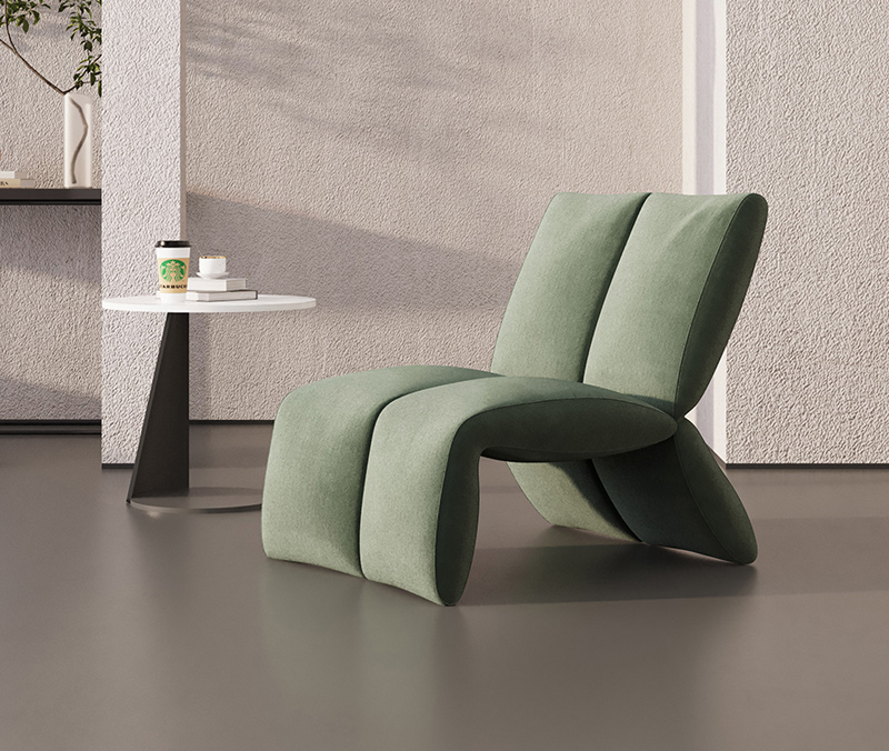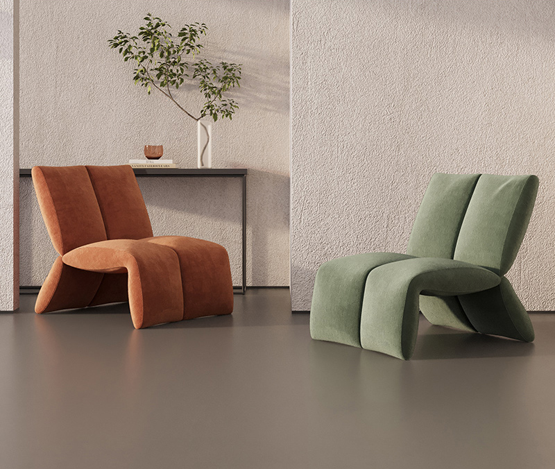 Single Sofa Chair Vintage Wabi Sabi Style Solid Wood Frame with Mohair Upholstery Designer Piece for Living Room and Balcony