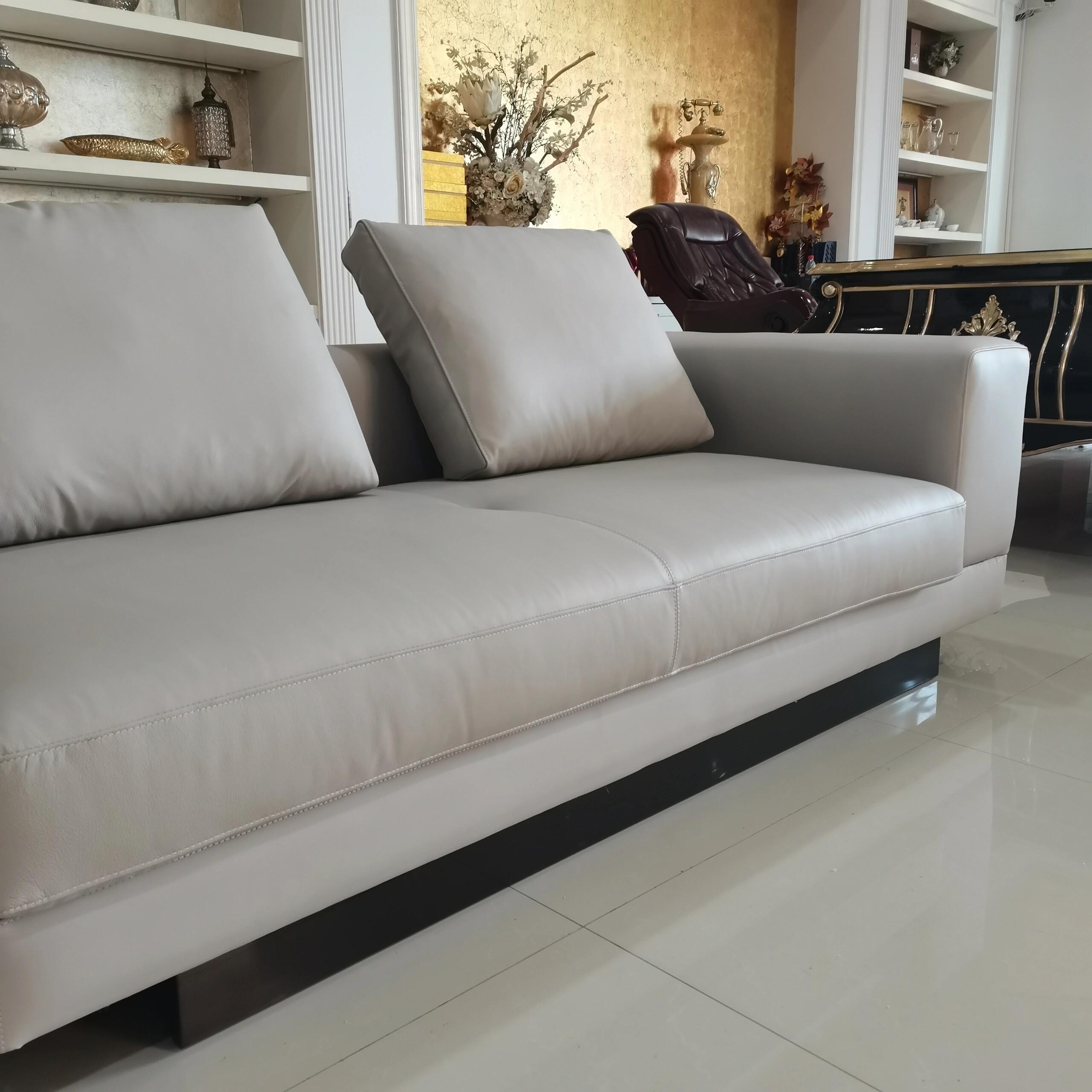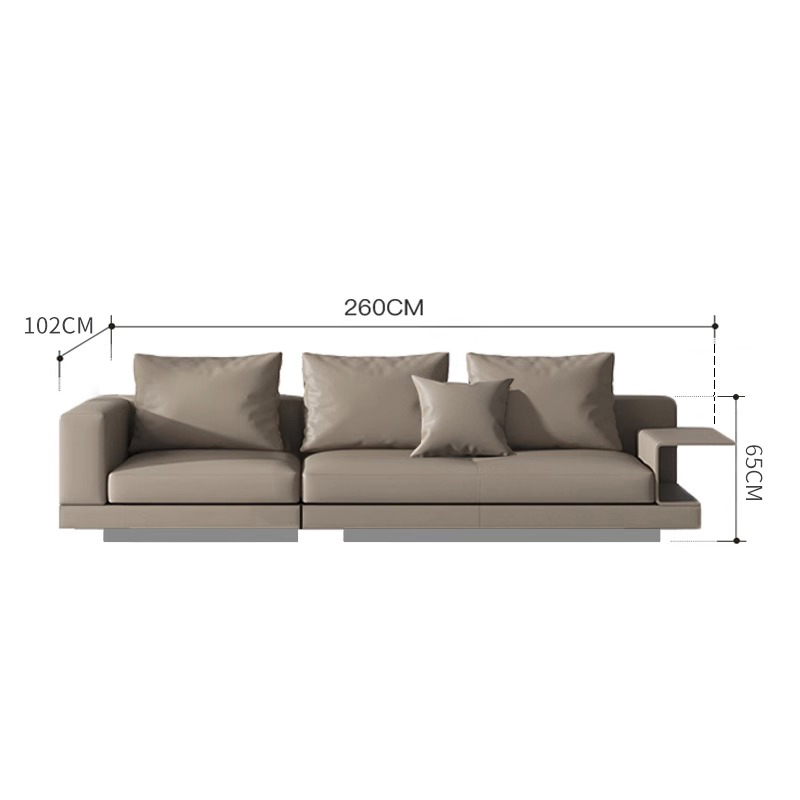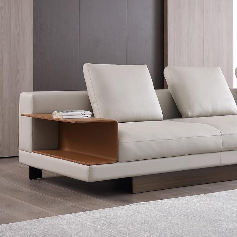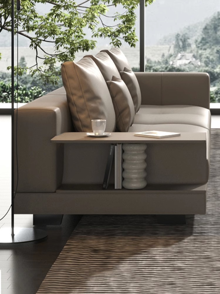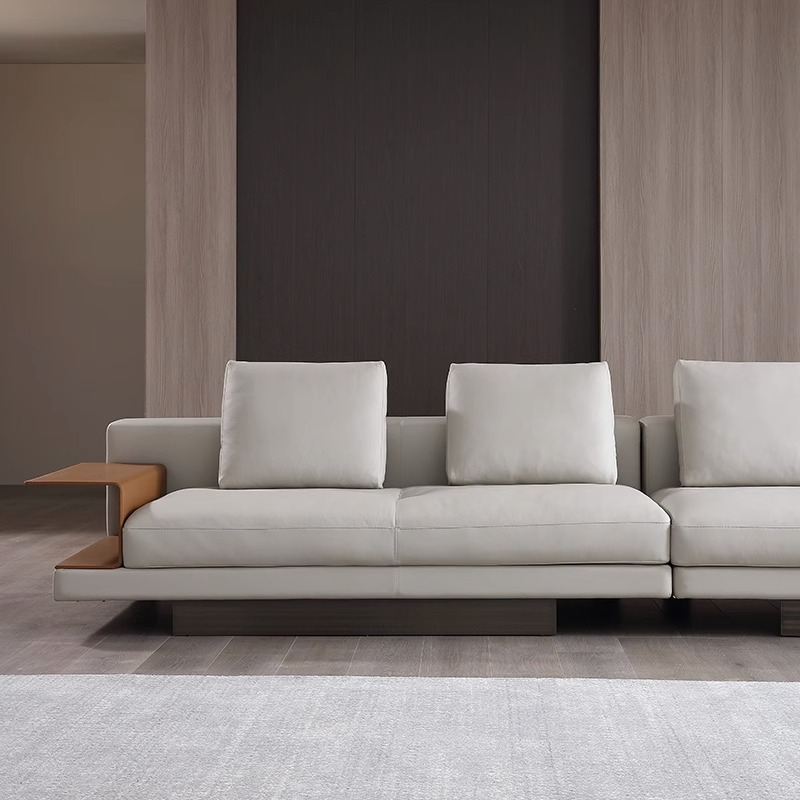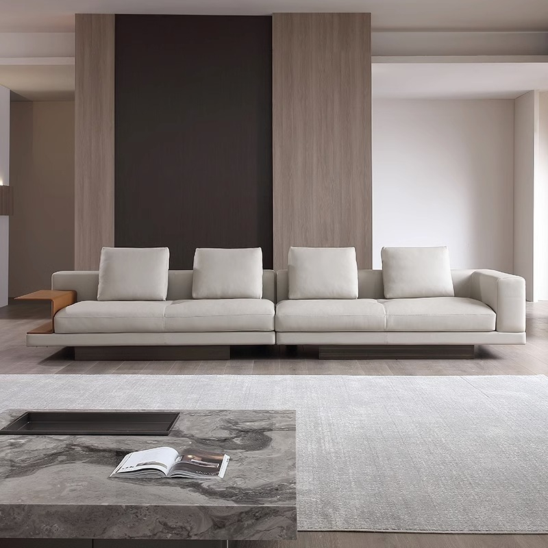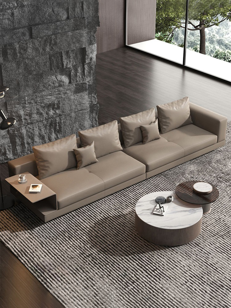 BUNISE leather sofa with removable backrest, minimalist Italian style, extra wide seating depth, villa living room, horizontal hall, large flat floor, modular leather sofa