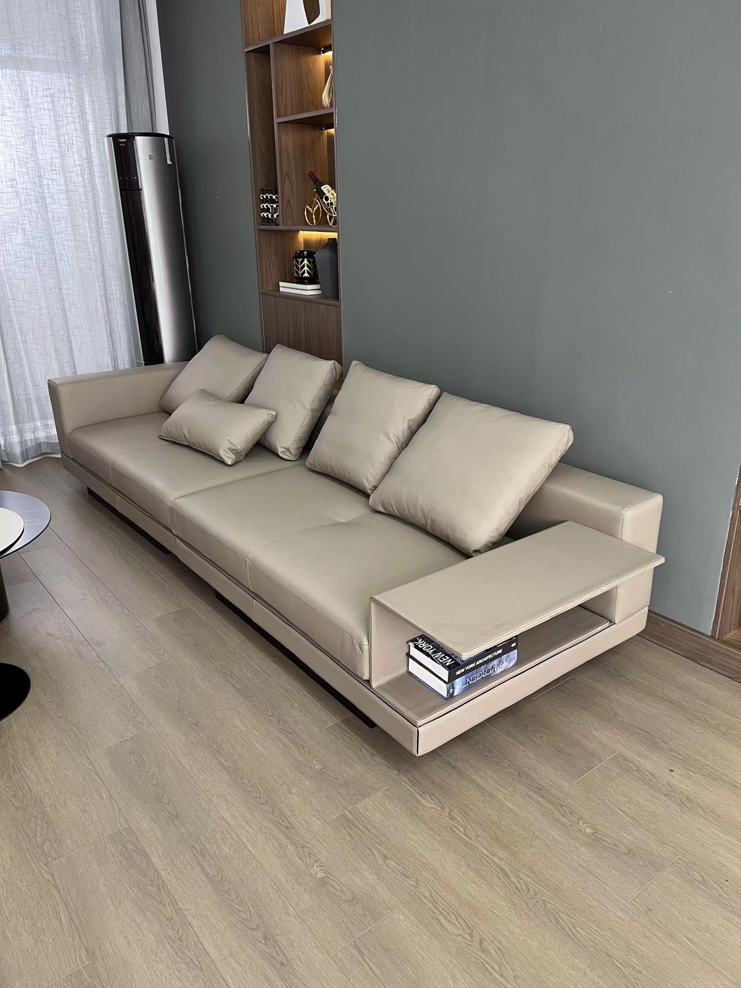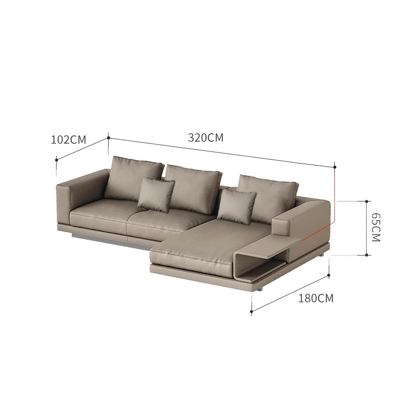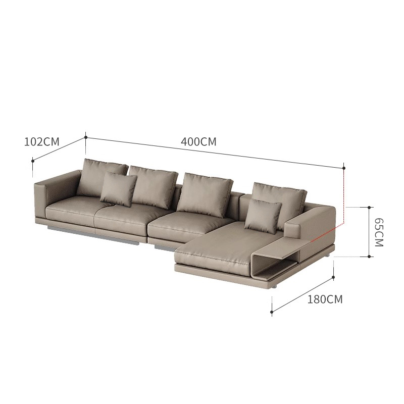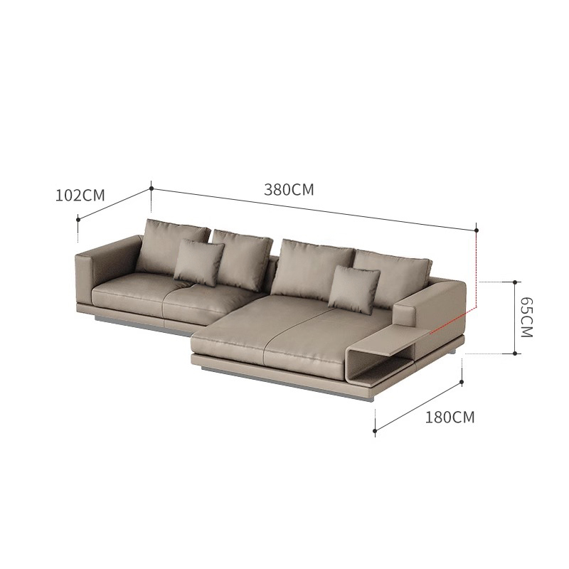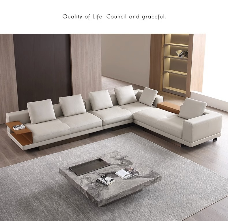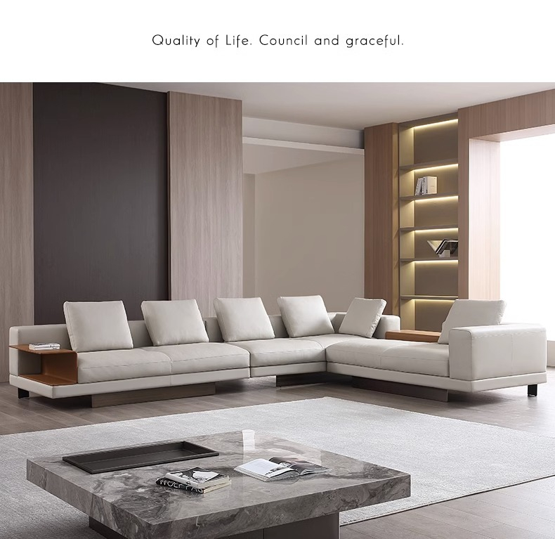 BUNISE leather sofa with removable backrest, minimalist Italian style, extra wide seating depth, villa living room, horizontal hall, large flat floor, modular leather sofa