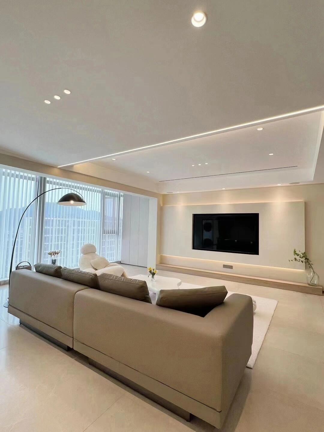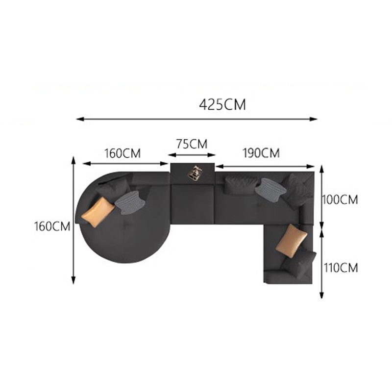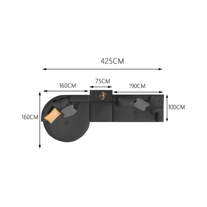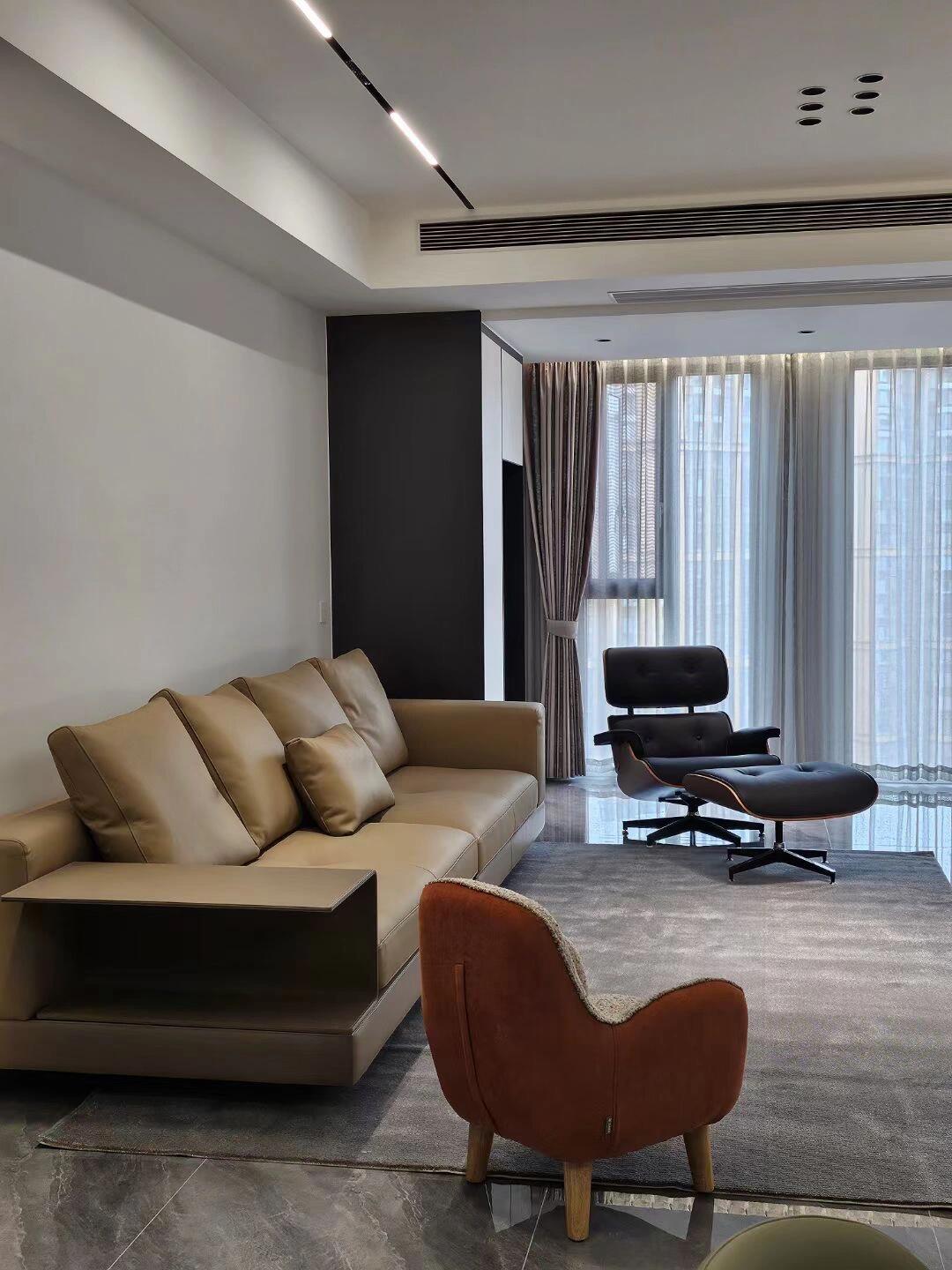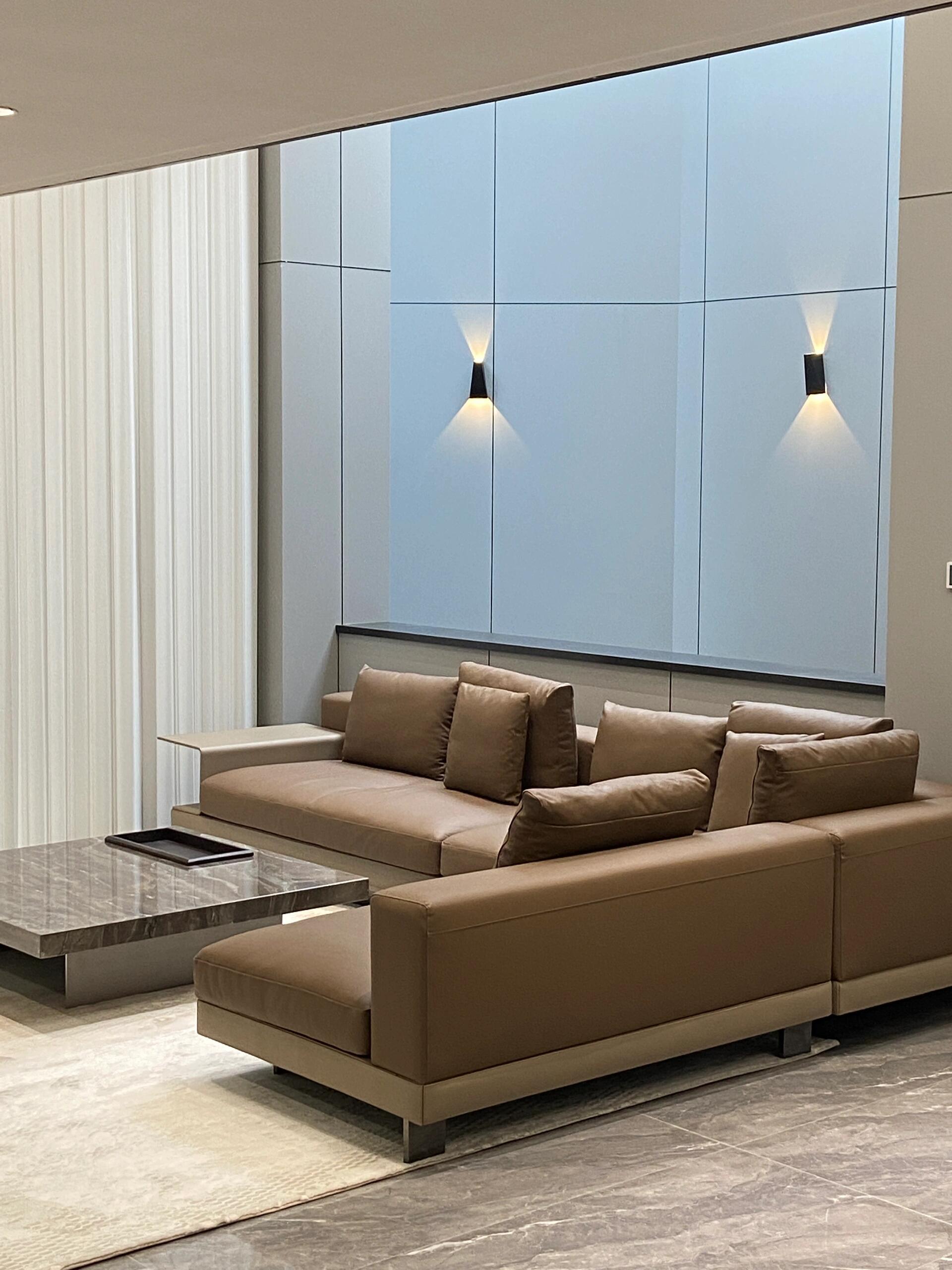 BUNISE leather sofa with removable backrest, minimalist Italian style, extra wide seating depth, villa living room, horizontal hall, large flat floor, modular leather sofa