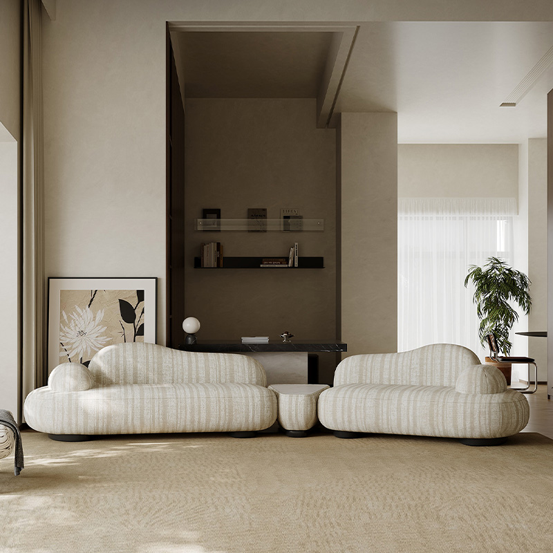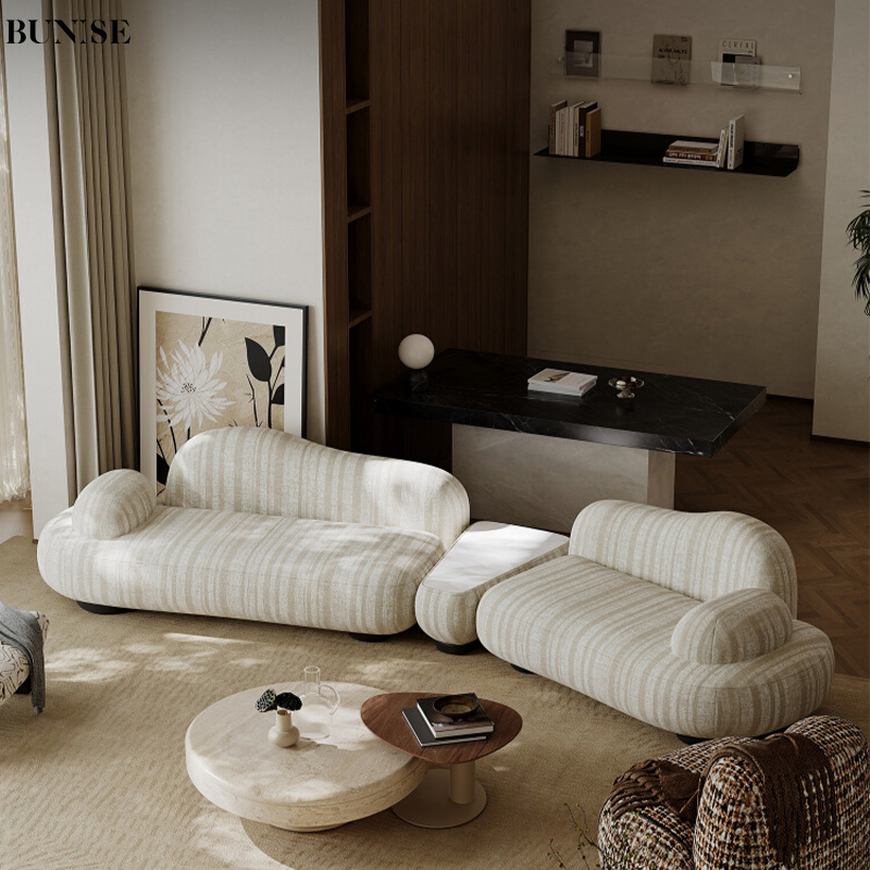 Cotton Linen Fabric Sofa Italian Minimalist Cream Tone Modern Style 2025 New Model Special Shape Corner Design for Living Room