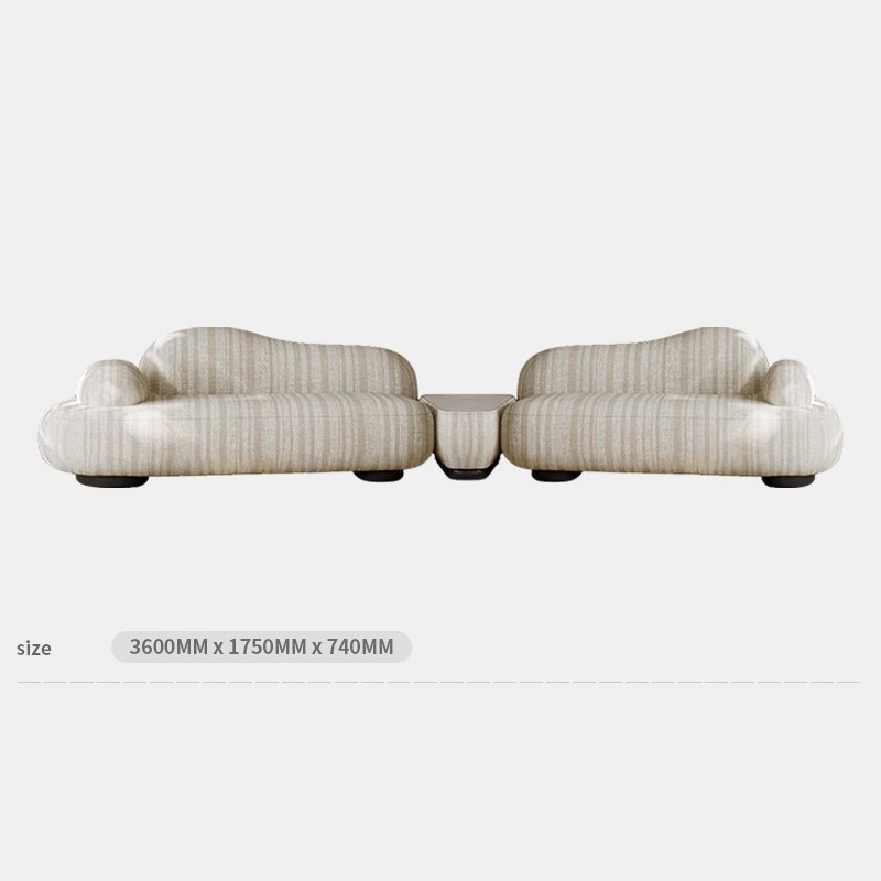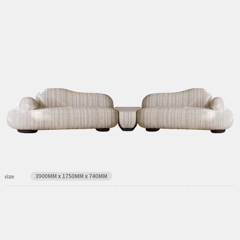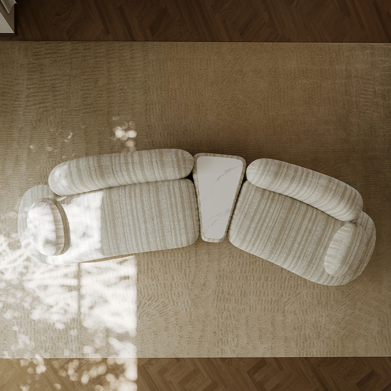 Italian Minimalist Curved Fabric Sofa Cotton Linen With Sintered Stone Elements Wabi Sabi Style Designer Original New Model For All Living Room Sizes Free Nationwide Delivery