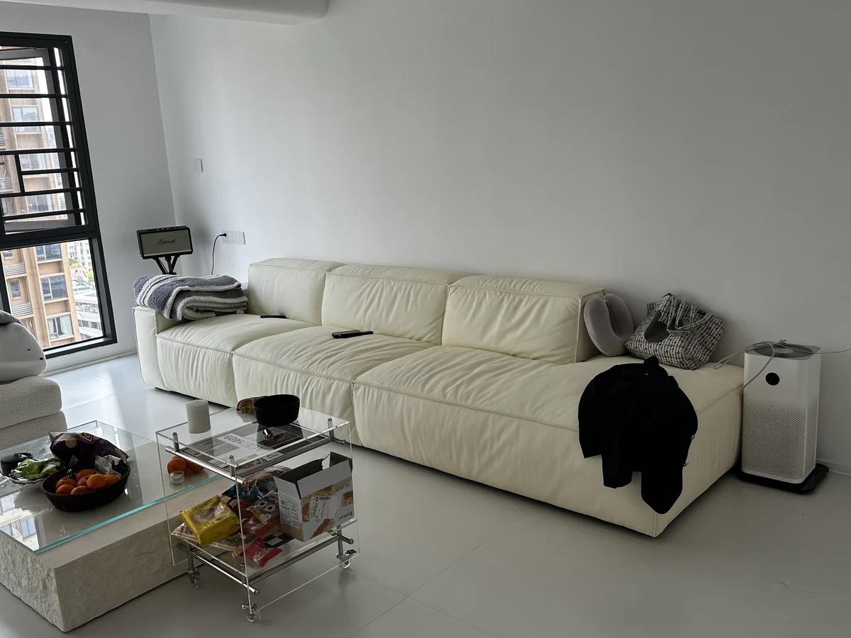 4 Seater Genuine Leather Sofa French Vintage Wabi Sabi Style Low Back Straight Modern Design Custom Made