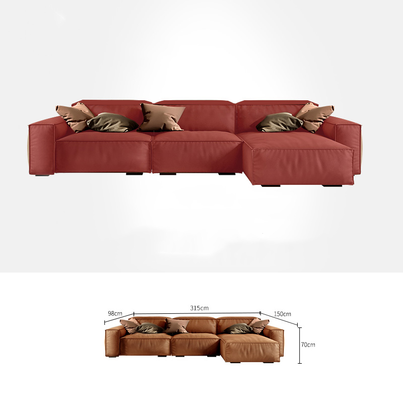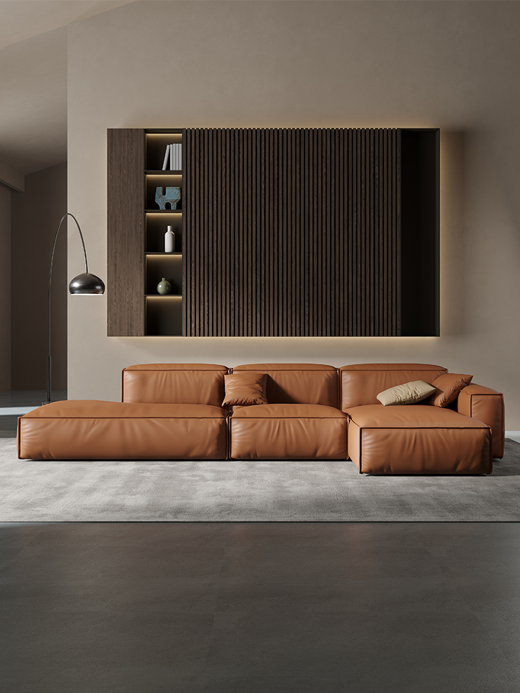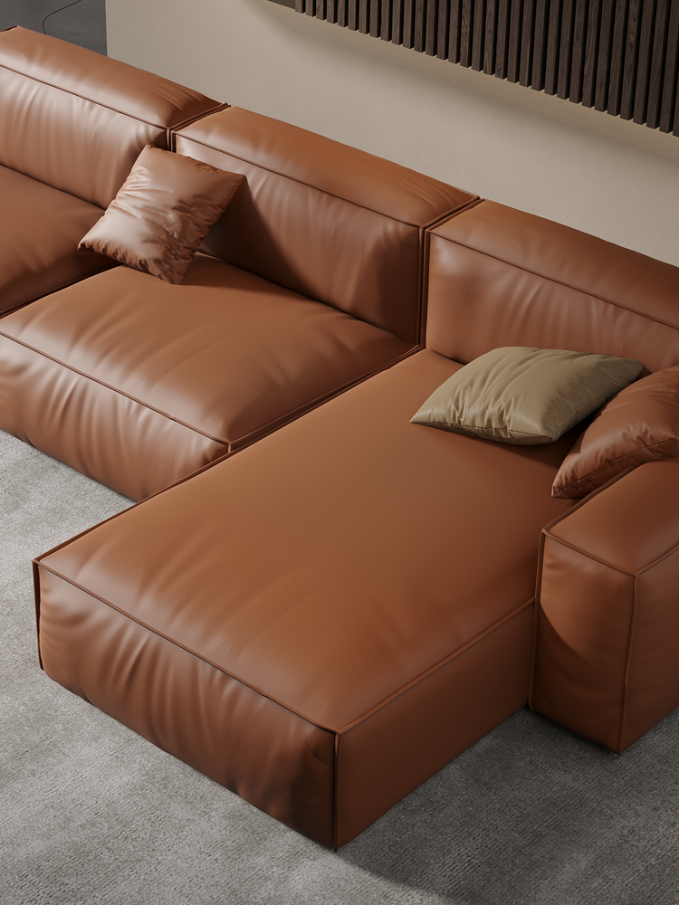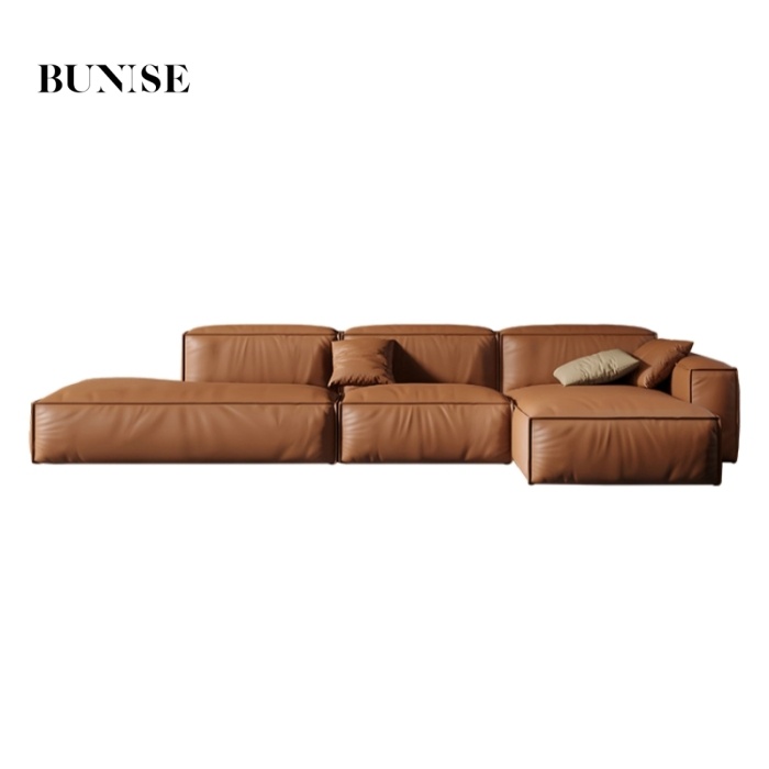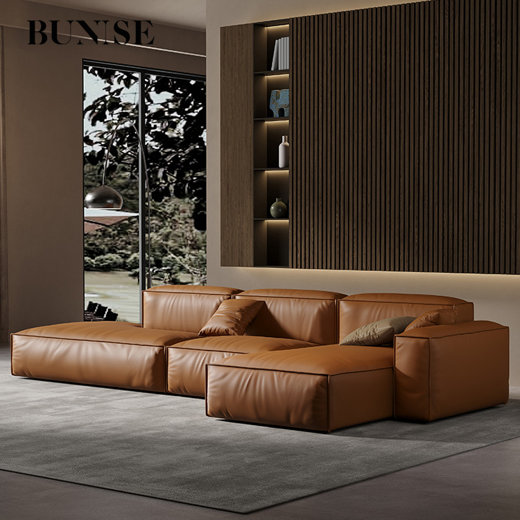 Bunise Studio Made,Luxury imported genuine leather sofa modern minimalist L-shaped sofa