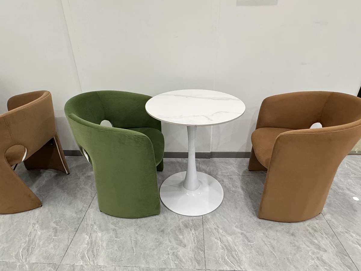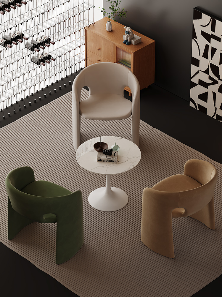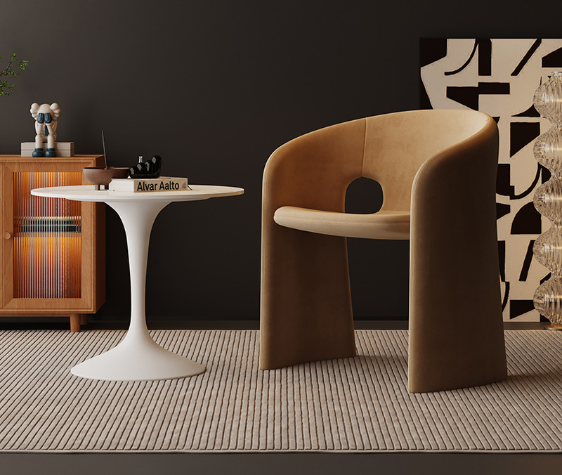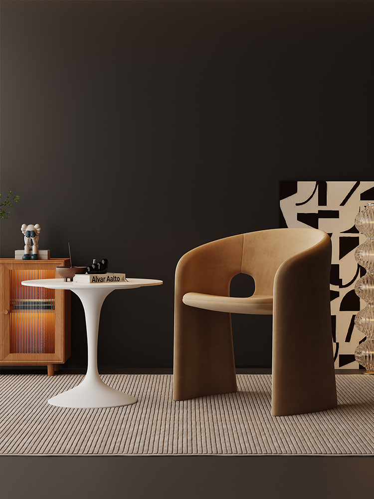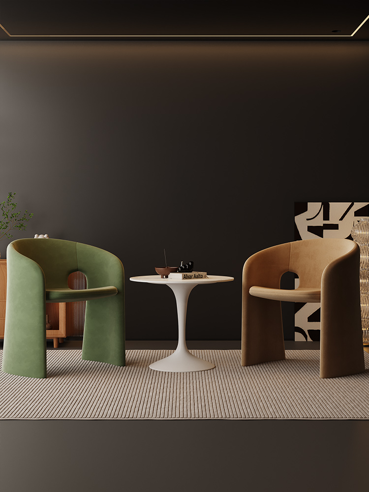 Single Sofa Chair Vintage Wabi Sabi Style Solid Wood Frame with Mohair Upholstery Designer Piece for Living Room and Balcony