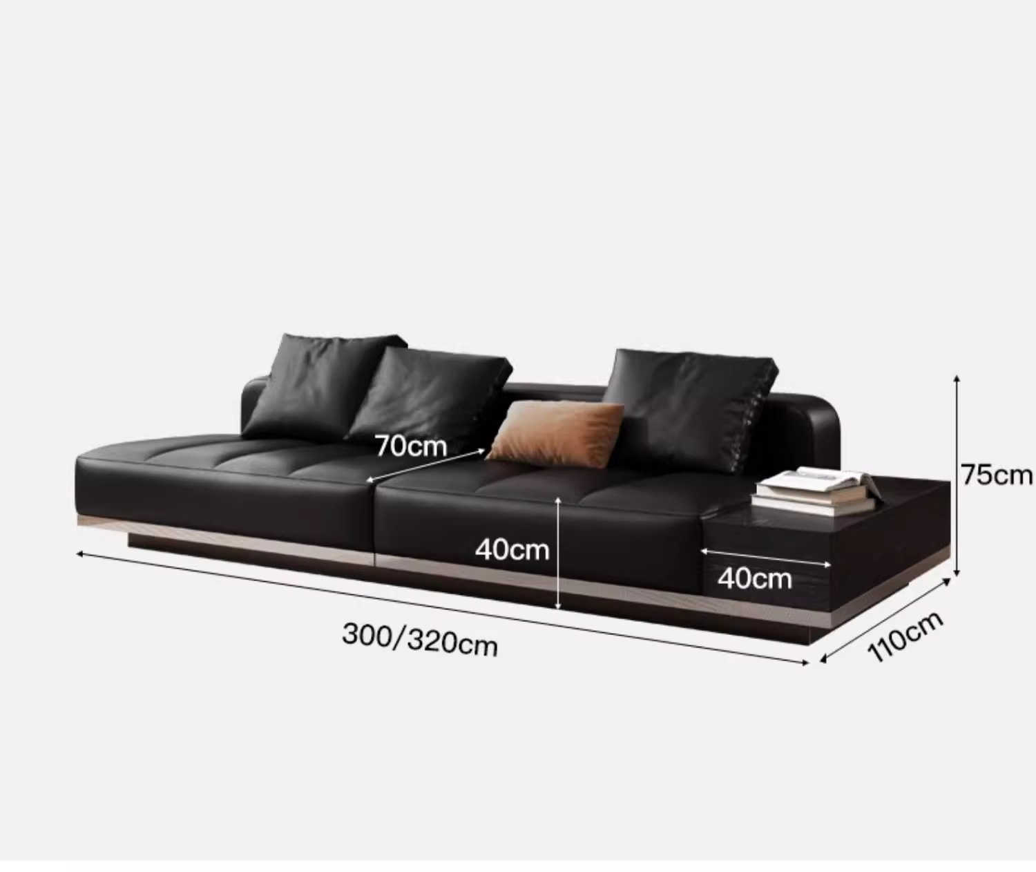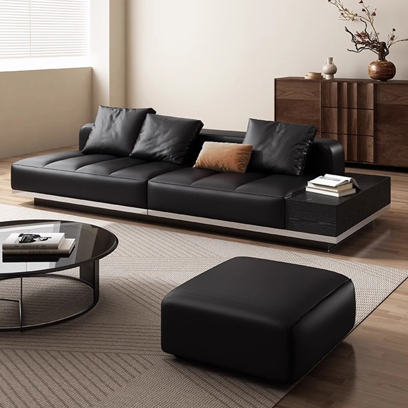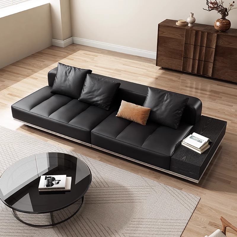 Italian Style Genuine Leather Sofa First Layer Cowhide for Small Spaces Wooden High Legs Tofu Block Design