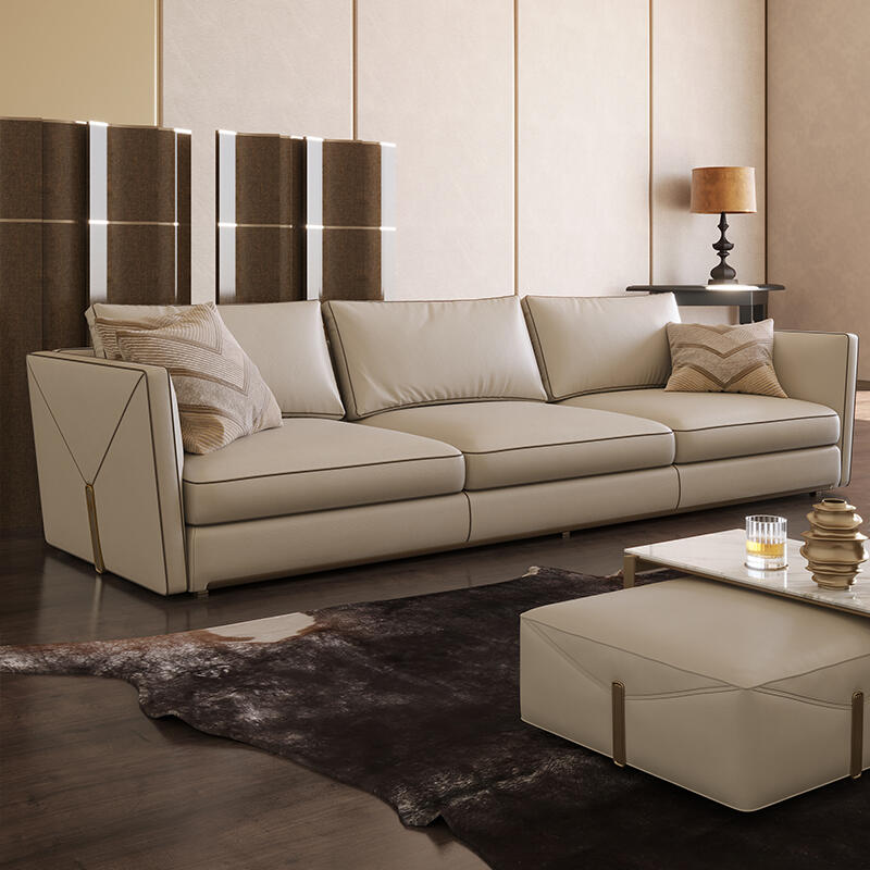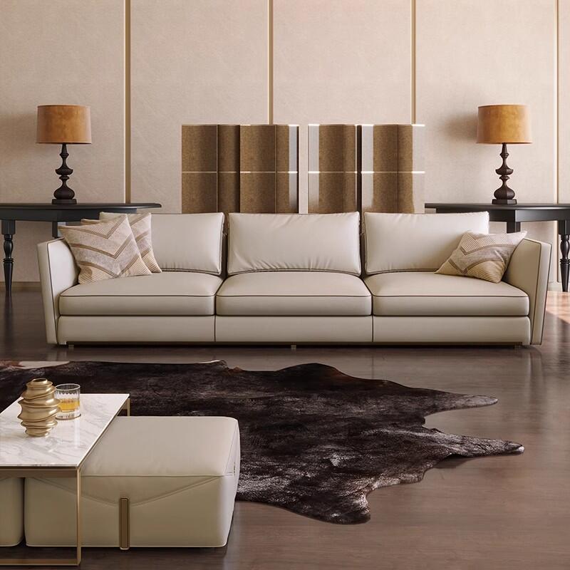 4 Seater Genuine Leather Sofa French Vintage Wabi Sabi Style Low Back Straight Modern Design Custom Made