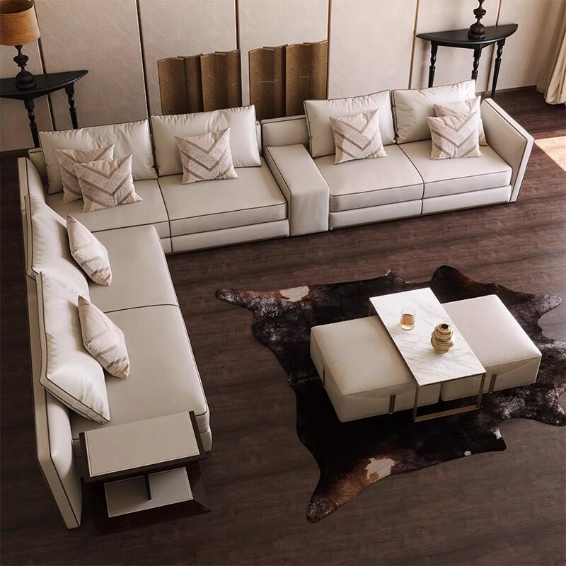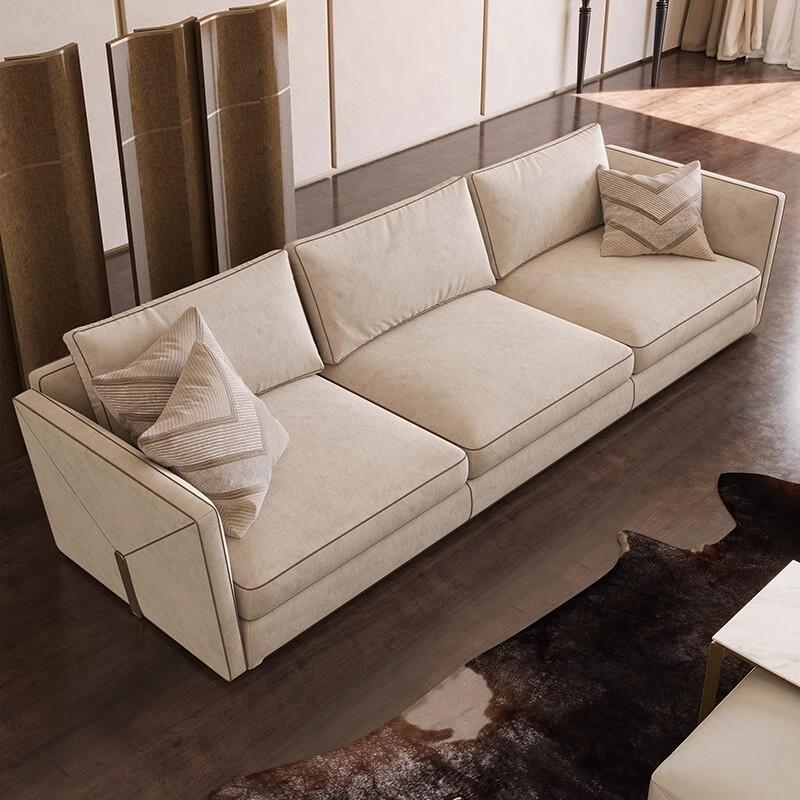 Cotton Linen Fabric Sofa Italian Minimalist Cream Tone Modern Style 2025 New Model Special Shape Corner Design for Living Room