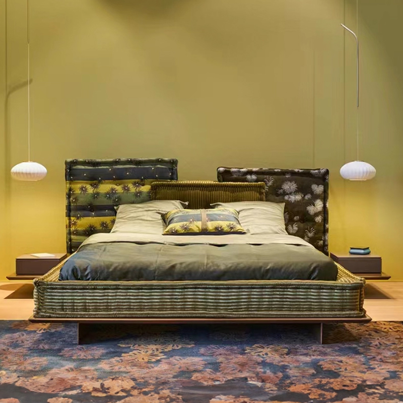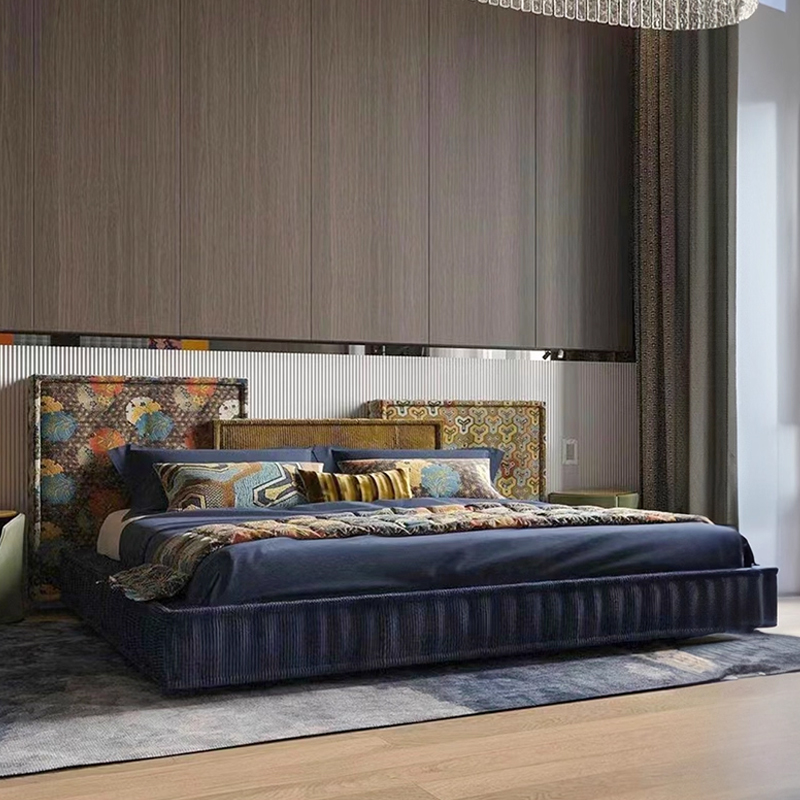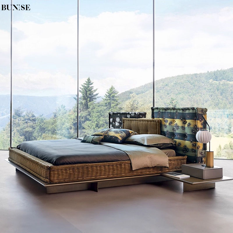 Minimalist Cotton Linen Double Bed 1.8m Rochibord Style Modern Design Ideal for Homestay and Luxury Villa