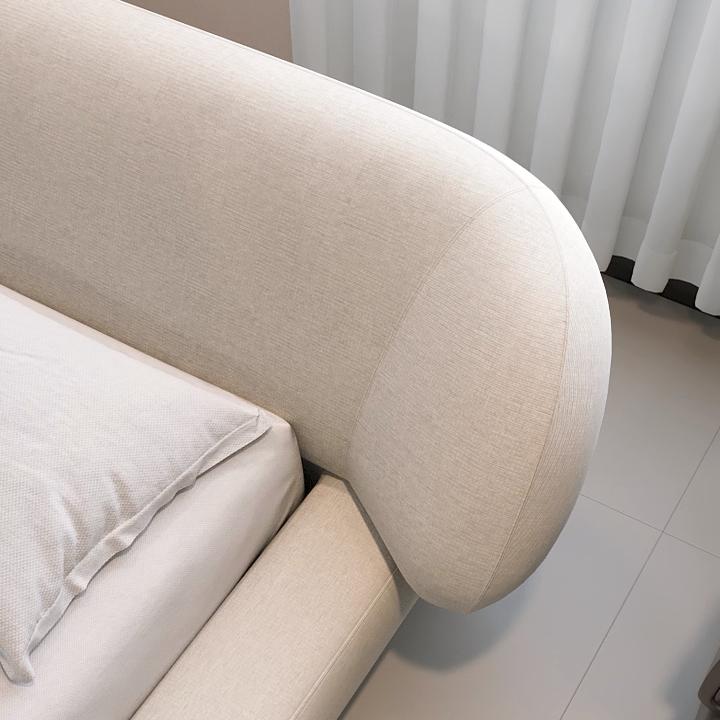 Double Bed Custom Made Cream Style Minimalist Design Curved Embrace Cotton Linen Upholstery for Master Bedroom and Luxury Home