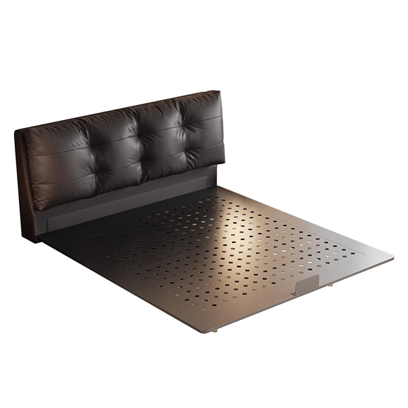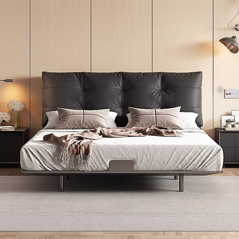 Leather Upholstered Floating Bed Modern Double Bed with Light Frame for Compact Master Bedroom