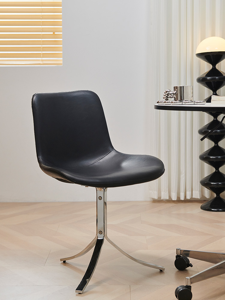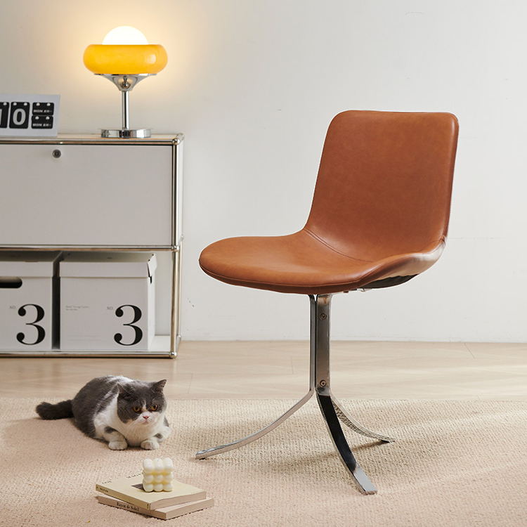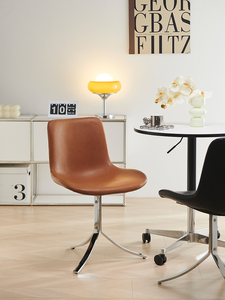 Retro Oil Wax Leather Dining Chair for Home, Meeting Room, Office, Modern Minimalist Design with Iron Frame