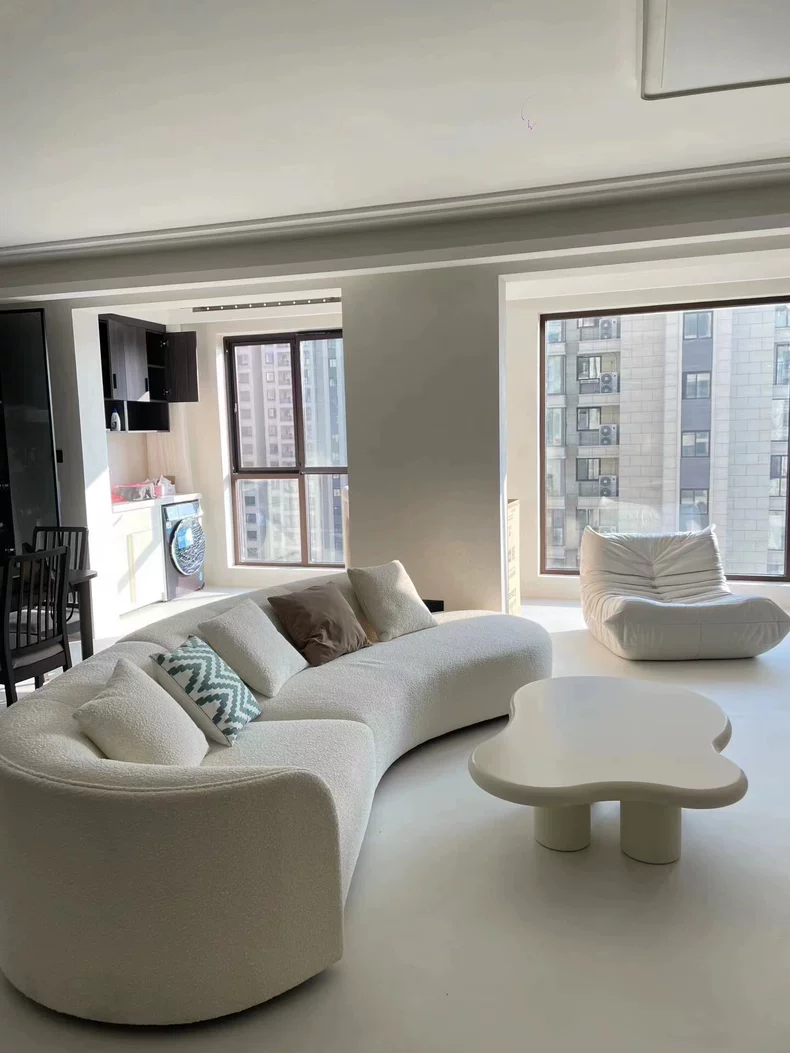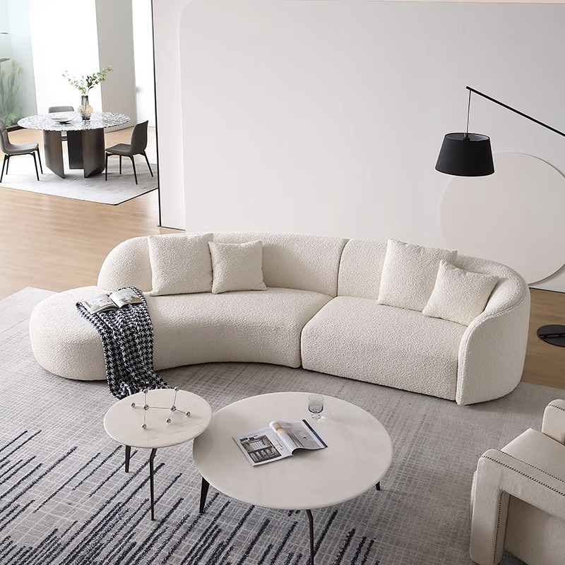 Cotton Linen Fabric Sofa Italian Minimalist Cream Tone Modern Style 2025 New Model Special Shape Corner Design for Living Room