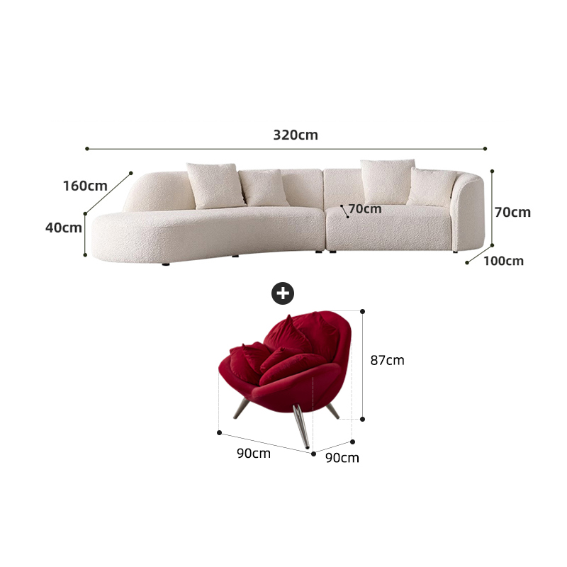 Bunise Soft Fabric Sofa, Waterproof and Stain Resistant. Half-Moon Shape Modern Luxury Style with Fleece Fabric Suitable for Living Rooms, Condos and Spa Beauties