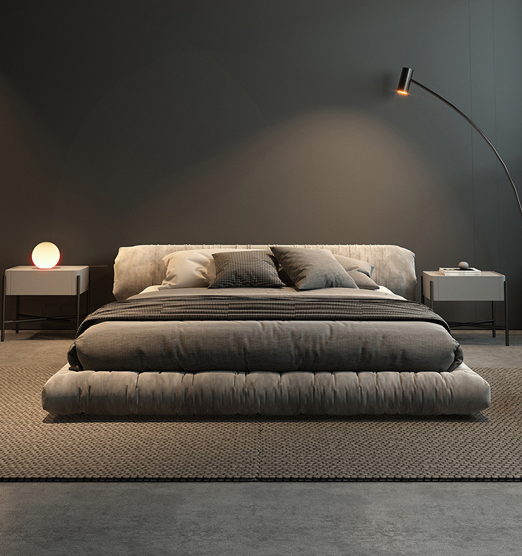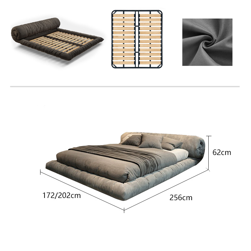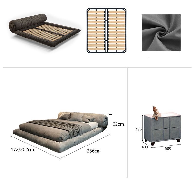 Minimalist Floating Fabric Bed with Solid Wood Frame Tech-Fabric Upholstery Wabi-Sabi Style for Master Bedroom or Villa