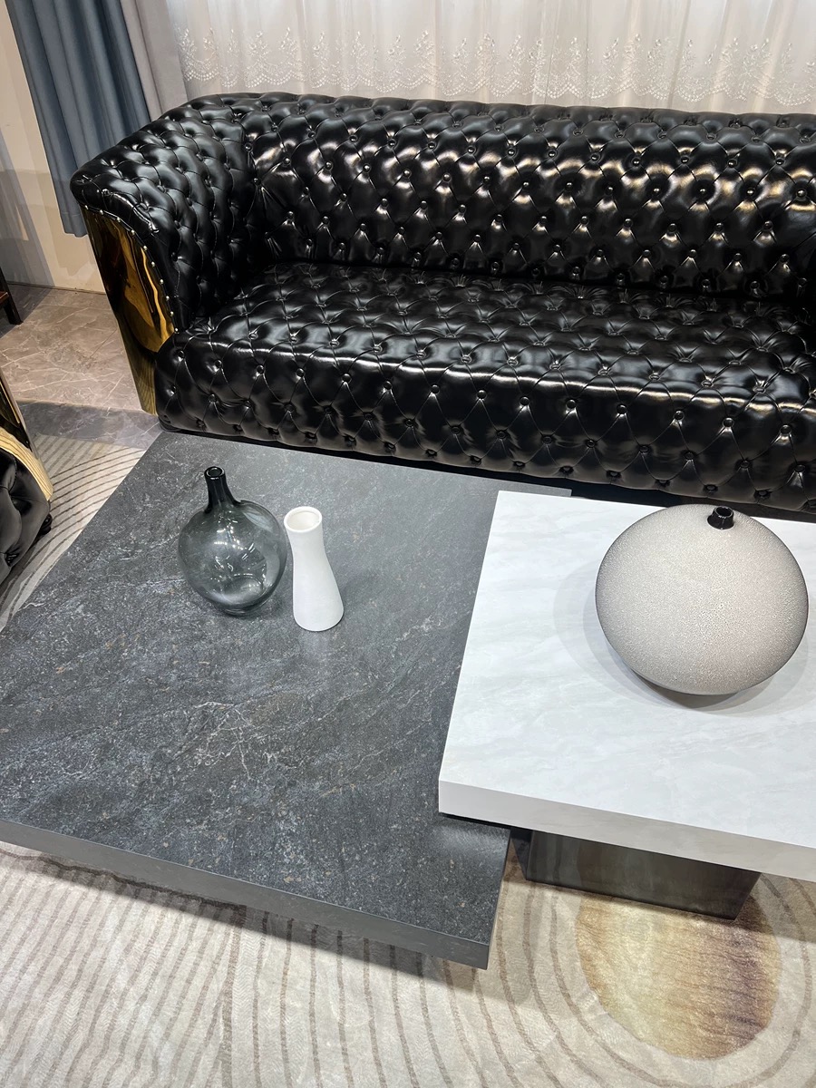 Three Seater Fabric Sofa Black and White Cream Style Ultra Soft Alpaca Fleece Modular Removable Cover for Luxury Living Room