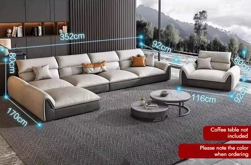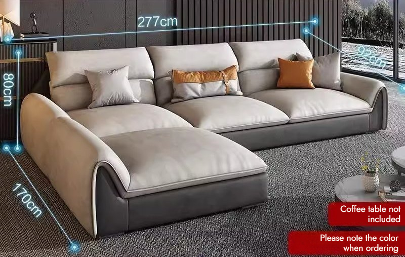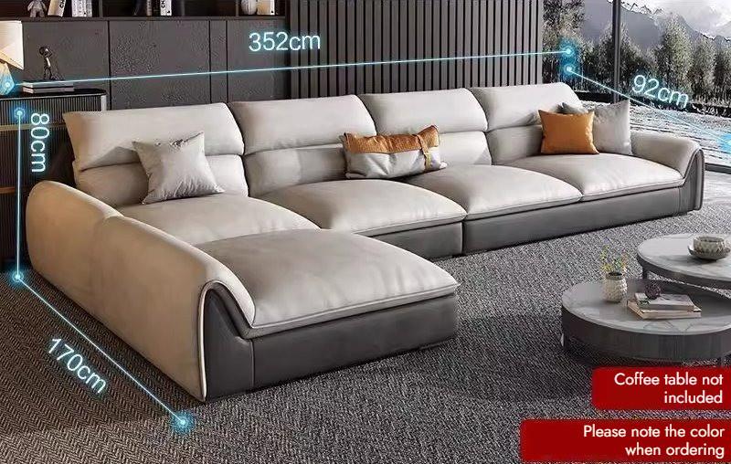 Italian Style Genuine Leather Sofa First Layer Cowhide for Small Spaces Wooden High Legs Tofu Block Design