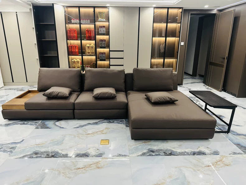 Leather Sofa Side Table, Luxury Style, Movable Design. for the Living Room, Free Shipping Throughout Thailand.