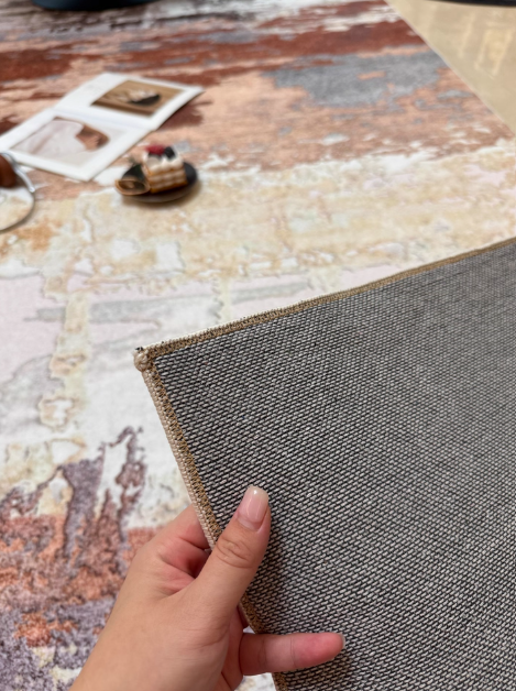This carpet has such a stylish design! The fabric is super soft, and there’s delicate edge binding all around—every detail and stitch work is good. It doesn’t slide around when laid on the floor; it stays firmly in place. What’s more, the surface is waterproof. Sitting on this carpet to read books or magazines is really such a cozy and pleasant experience.